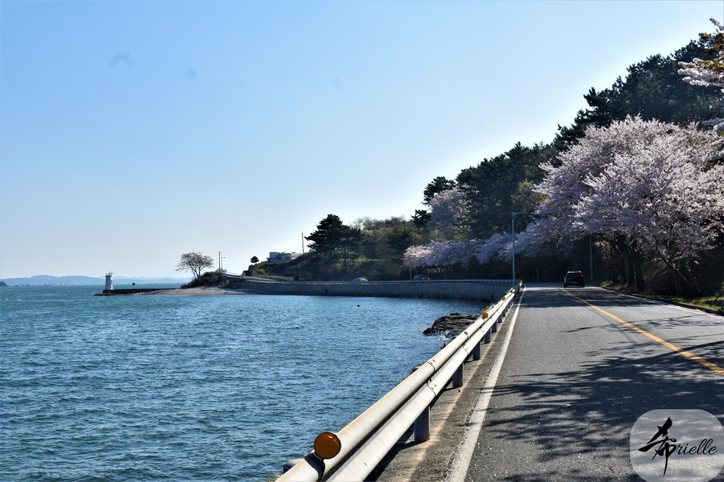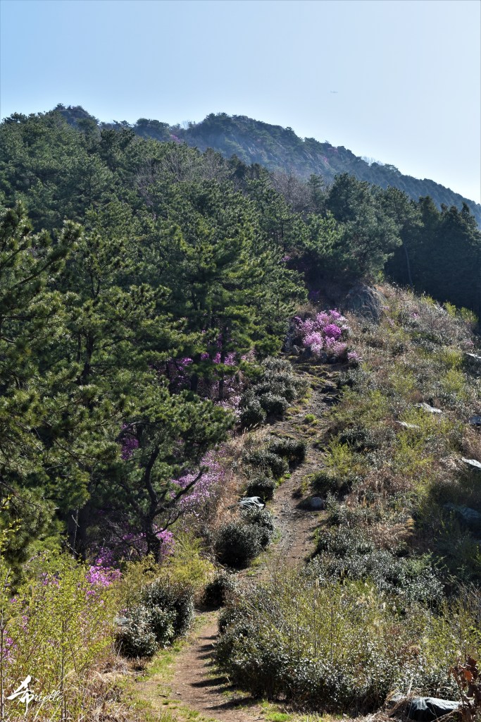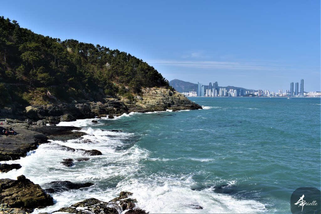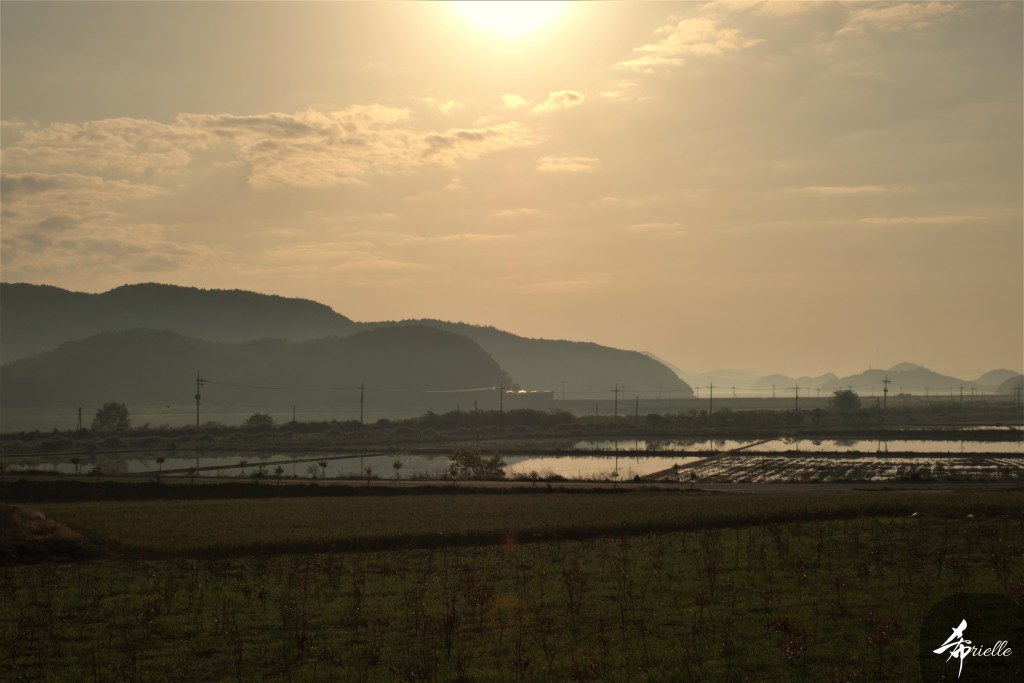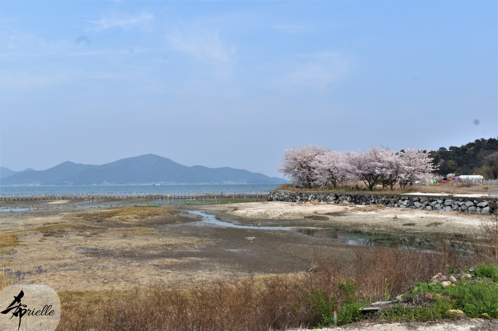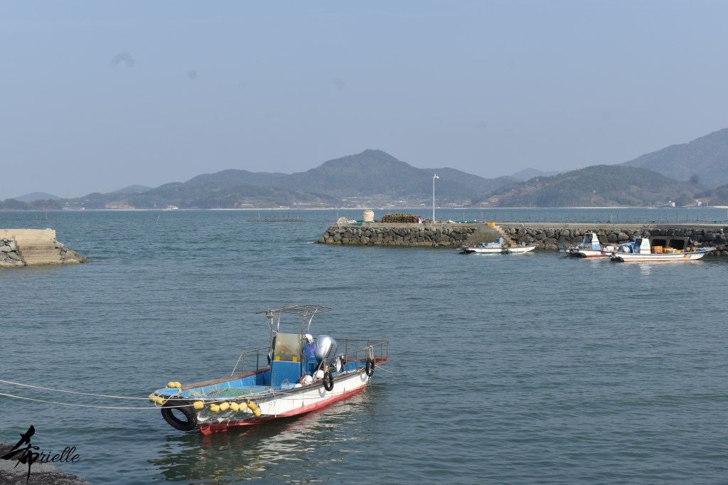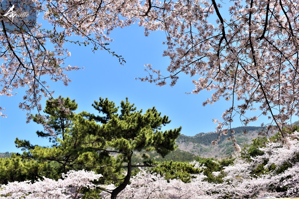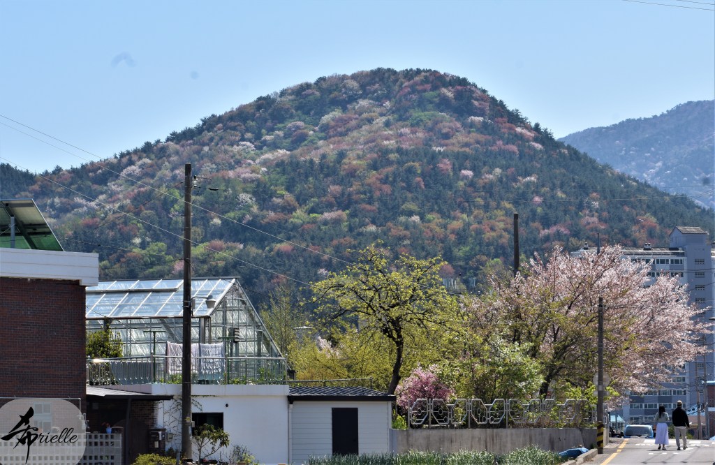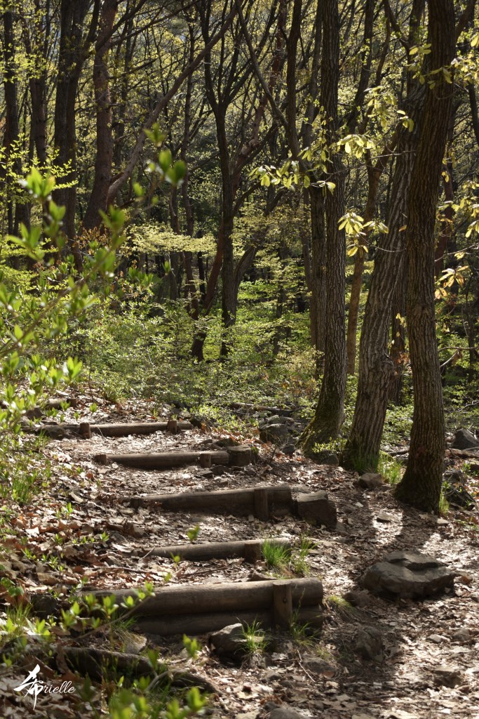 Etant donné que je passe la plupart de mon temps libre soit à la montagne, soit au bord de l’océan, on me demande souvent lequel des deux je préfère. Et bien, honnêtement c’est très difficile à dire mais je crois que là où je me sens le mieux, c’est au sommet d’une montagne offrant une vue sur l’océan. Que ce soit après une randonnée à pieds ou en vélo, il n’y a rien que j’aime plus que le fait de pouvoir finir la journée dans l’eau. Ainsi, l’une des villes où j’aime le plus marcher en Corée, est Tongyeong. Cette ville portuaire, montagneuse est constituée de plusieurs îles accessibles par bateau. Ces trois dernières années, j’ai eu l’occasion de faire le tour de la plupart de ces îles : Bijin, Saryang, Maemul, Seomaemul, Yokji, Suu … Les articles viendront si j’arrive à me tenir à la résolution de publier « plus souvent ». Oui, j’avoue ce n’est pas très précis ni très exigeant comme résolution ! Bref, cette année, j’avais donc envie de rejoindre le sommet de la montagne à Tongyeong qui n’est pas sur une île et ne nécessite donc pas de promenade en bateau. Ainsi, fin avril, j’ai pris le bus jusque là-bas puis un taxi pour rejoindre l’un des temples situés au pied du Mont Mireuk et d’où commence un sentier de randonnée. Encore une fois, il faisait tellement beau que la vue était superbe, en tons de bleu sur bleu. J’étais partie seule donc j’ai pris le temps de prendre toutes les photos que je voulais et profiter de la vue au sommet. Ce jour-là je n’ai pas croisé beaucoup d’autres marcheurs et je crois même que c’est le sentier le plus propre sur lequel j’ai jamais marché. Au sommet, comme le veut la tradition, le peu de personnes présentes, faisaient des photos avec la pierre indiquant le nom et l’altitude du pic. J’avais prévu mon trépied pour en prendre une aussi mais un promeneur venu avec un groupe, qui venait de faire plus d’une quinzaine de photos de ses amis, m’a dit qu’il était photographe et a insisté pour prendre la mienne. Je l’ai donc laissé faire et le résultat était plutôt convaincant. C’est agréable de discuter avec les gens en montagne parce qu’en général, ils sont souriants et sympathiques. Il faut dire qu’il est difficile de ne pas être de bonne humeur, face à la beauté des paysages ! Pour ceux qui le souhaitent, une ligne de cabines téléfériques fait aussi l’aller-retour du port au sommet. Pour ma part, j’ai particulièrement apprécié, une oeuvre d’art installée sur un belvédère offrant une vue vers l’est et sur l’île de Geoje. Il s’agissait d’une sculpture en métal du profil d’une femme regardant au loin. Ce n’est pas la première oeuvre de ce genre que je croise dans la région mais à et endroit, je ne m’y attendais vraiment pas et je l’ai trouvée absolument magnifique !