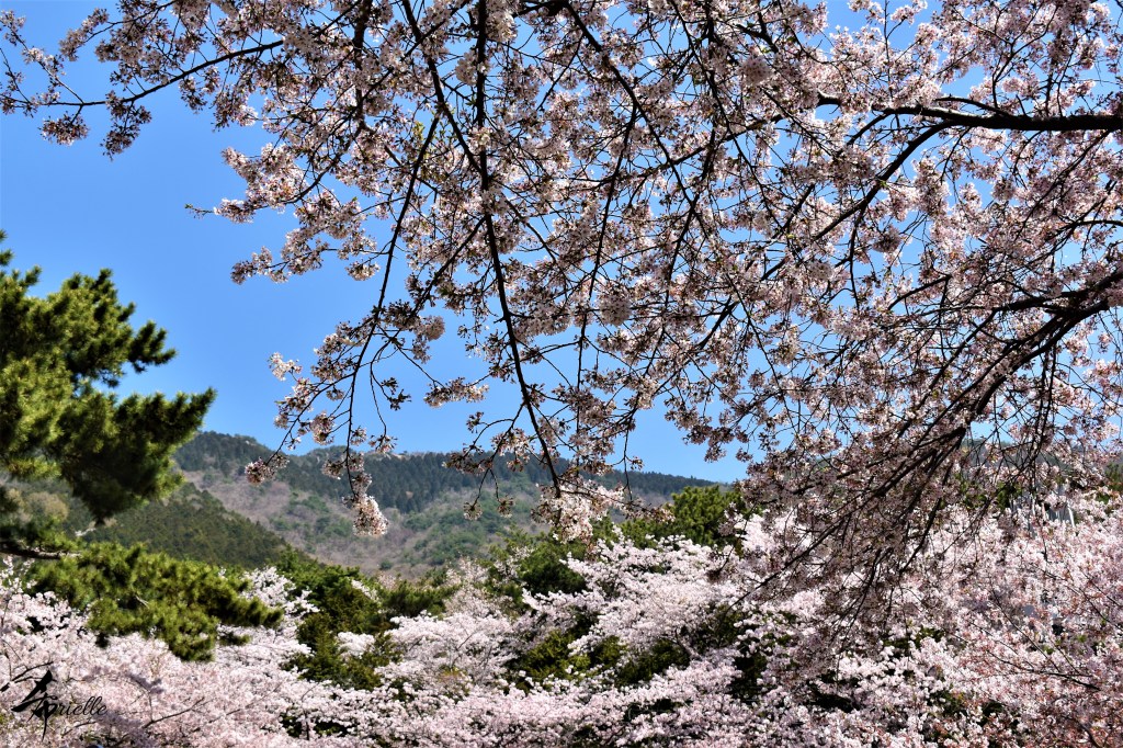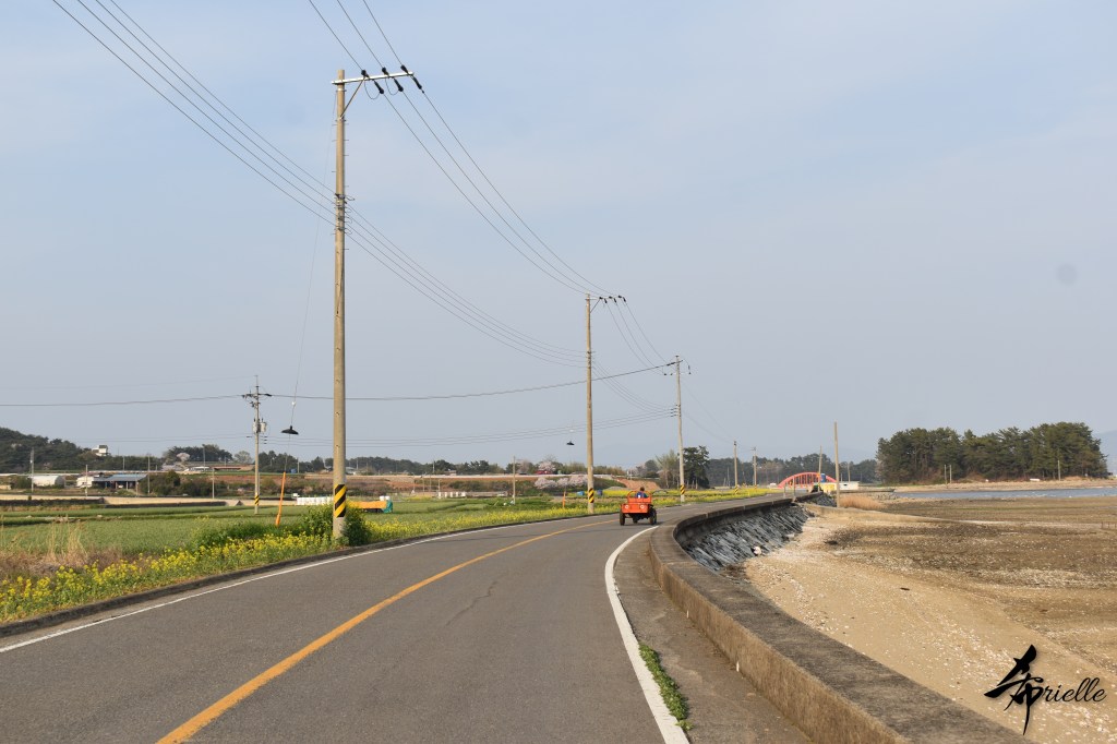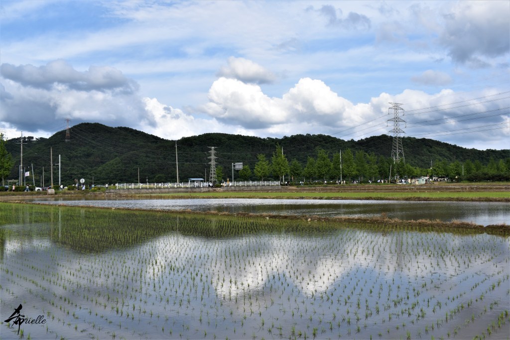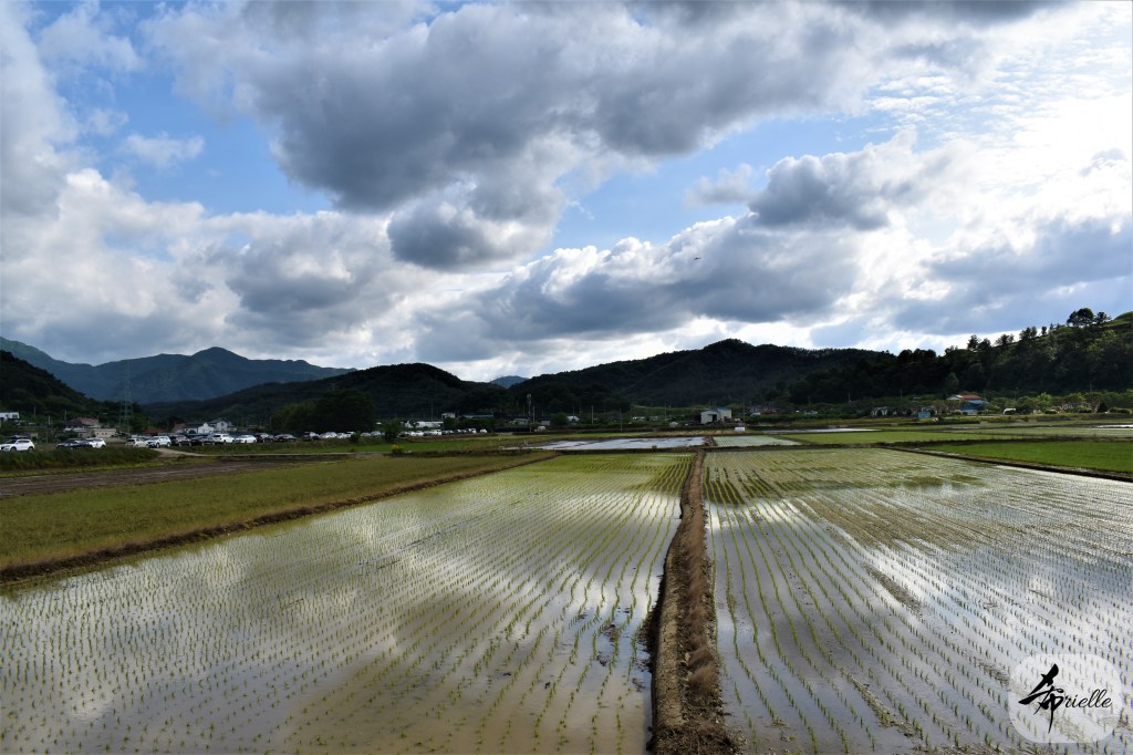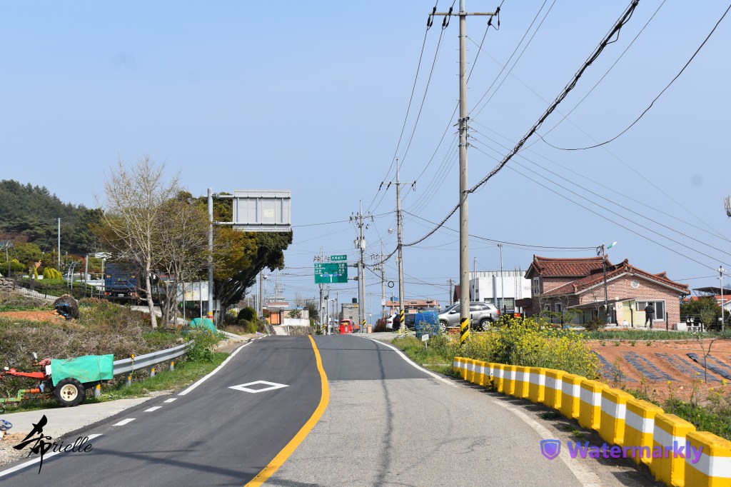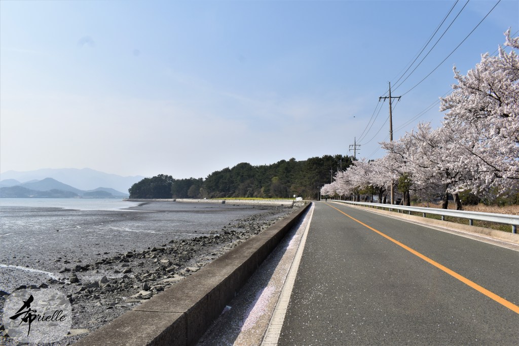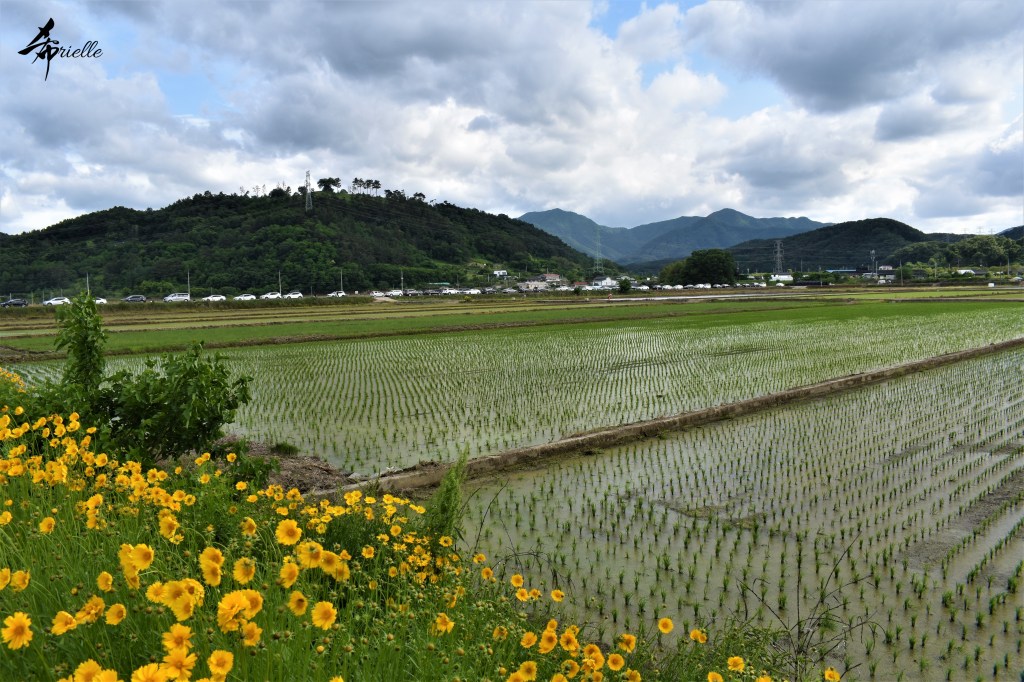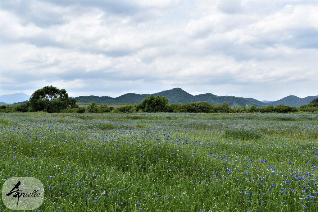 Etant donné que je passe la plupart de mon temps libre soit à la montagne, soit au bord de l’océan, on me demande souvent lequel des deux je préfère. Et bien, honnêtement c’est très difficile à dire mais je crois que là où je me sens le mieux, c’est au sommet d’une montagne offrant une vue sur l’océan. Que ce soit après une randonnée à pieds ou en vélo, il n’y a rien que j’aime plus que le fait de pouvoir finir la journée dans l’eau. Ainsi, l’une des villes où j’aime le plus marcher en Corée, est Tongyeong. Cette ville portuaire, montagneuse est constituée de plusieurs îles accessibles par bateau. Ces trois dernières années, j’ai eu l’occasion de faire le tour de la plupart de ces îles : Bijin, Saryang, Maemul, Seomaemul, Yokji, Suu … Les articles viendront si j’arrive à me tenir à la résolution de publier « plus souvent ». Oui, j’avoue ce n’est pas très précis ni très exigeant comme résolution ! Bref, cette année, j’avais donc envie de rejoindre le sommet de la montagne à Tongyeong qui n’est pas sur une île et ne nécessite donc pas de promenade en bateau. Ainsi, fin avril, j’ai pris le bus jusque là-bas puis un taxi pour rejoindre l’un des temples situés au pied du Mont Mireuk et d’où commence un sentier de randonnée. Encore une fois, il faisait tellement beau que la vue était superbe, en tons de bleu sur bleu. J’étais partie seule donc j’ai pris le temps de prendre toutes les photos que je voulais et profiter de la vue au sommet. Ce jour-là je n’ai pas croisé beaucoup d’autres marcheurs et je crois même que c’est le sentier le plus propre sur lequel j’ai jamais marché. Au sommet, comme le veut la tradition, le peu de personnes présentes, faisaient des photos avec la pierre indiquant le nom et l’altitude du pic. J’avais prévu mon trépied pour en prendre une aussi mais un promeneur venu avec un groupe, qui venait de faire plus d’une quinzaine de photos de ses amis, m’a dit qu’il était photographe et a insisté pour prendre la mienne. Je l’ai donc laissé faire et le résultat était plutôt convaincant. C’est agréable de discuter avec les gens en montagne parce qu’en général, ils sont souriants et sympathiques. Il faut dire qu’il est difficile de ne pas être de bonne humeur, face à la beauté des paysages ! Pour ceux qui le souhaitent, une ligne de cabines téléfériques fait aussi l’aller-retour du port au sommet. Pour ma part, j’ai particulièrement apprécié, une oeuvre d’art installée sur un belvédère offrant une vue vers l’est et sur l’île de Geoje. Il s’agissait d’une sculpture en métal du profil d’une femme regardant au loin. Ce n’est pas la première oeuvre de ce genre que je croise dans la région mais à et endroit, je ne m’y attendais vraiment pas et je l’ai trouvée absolument magnifique !