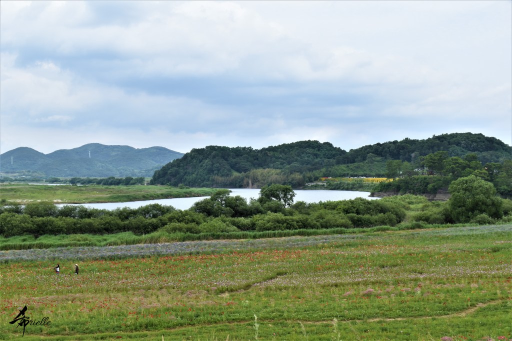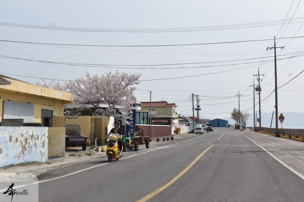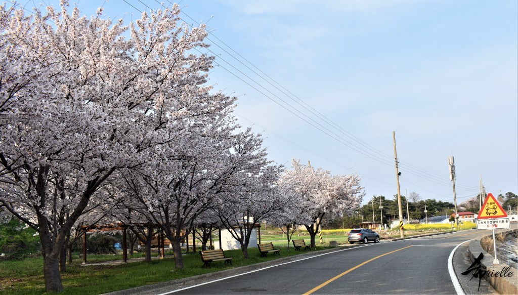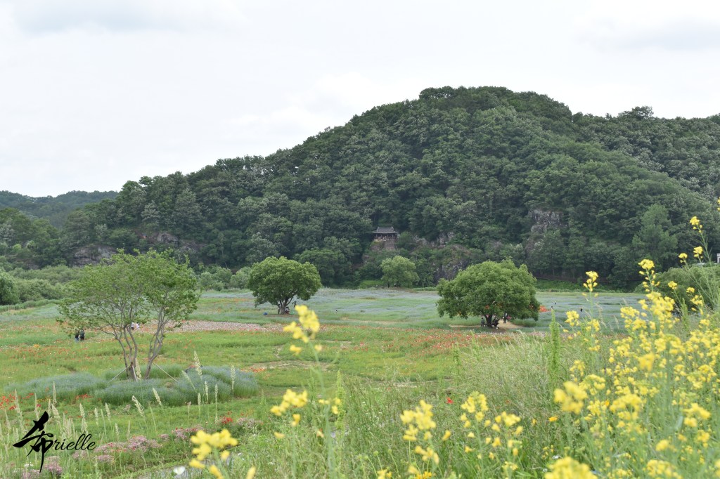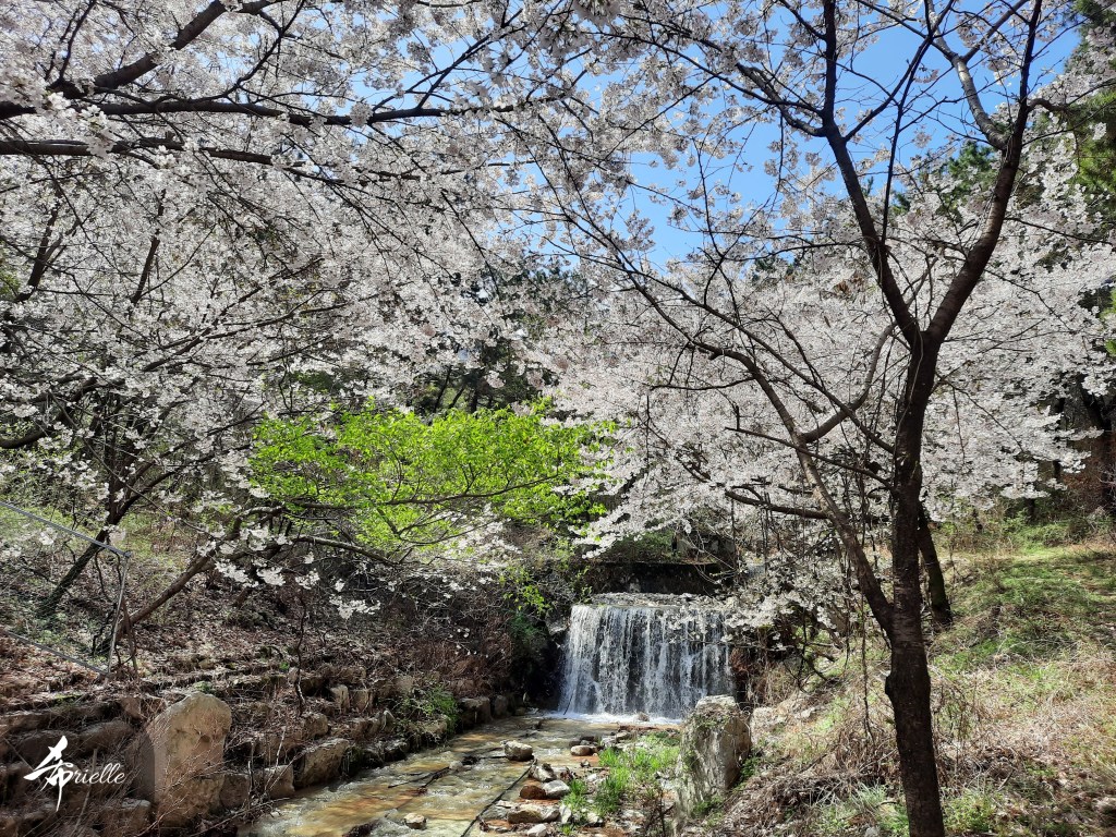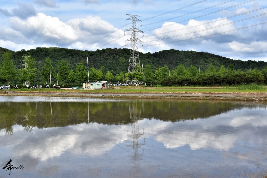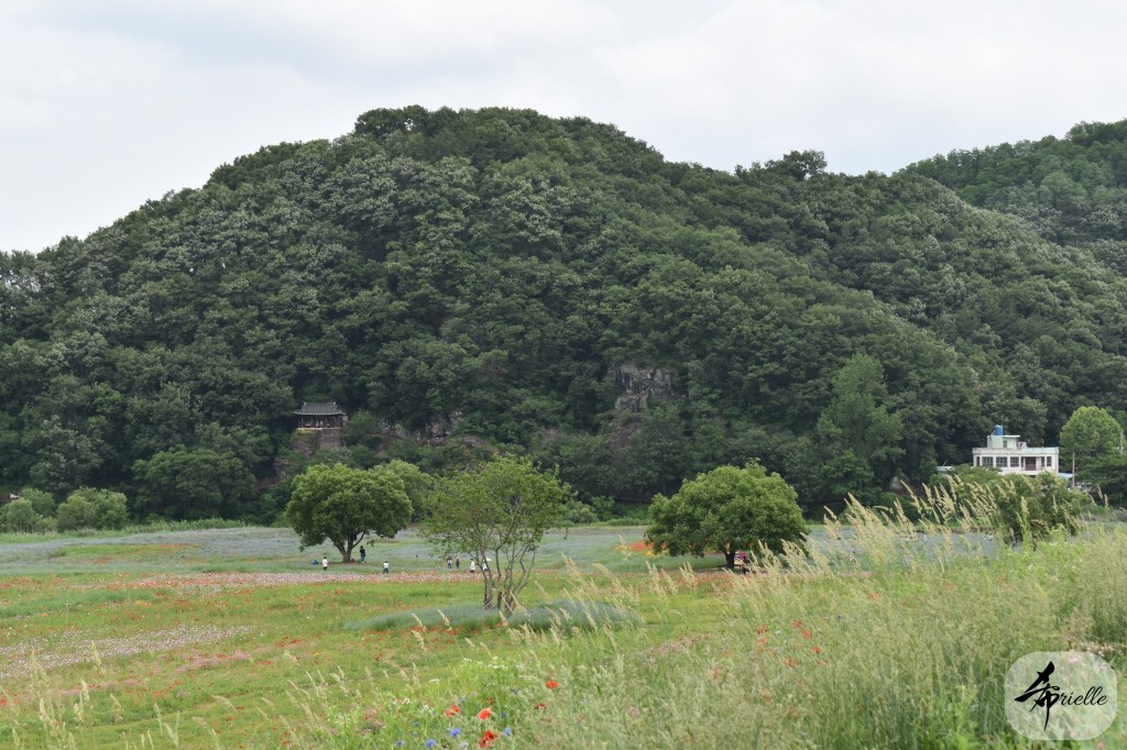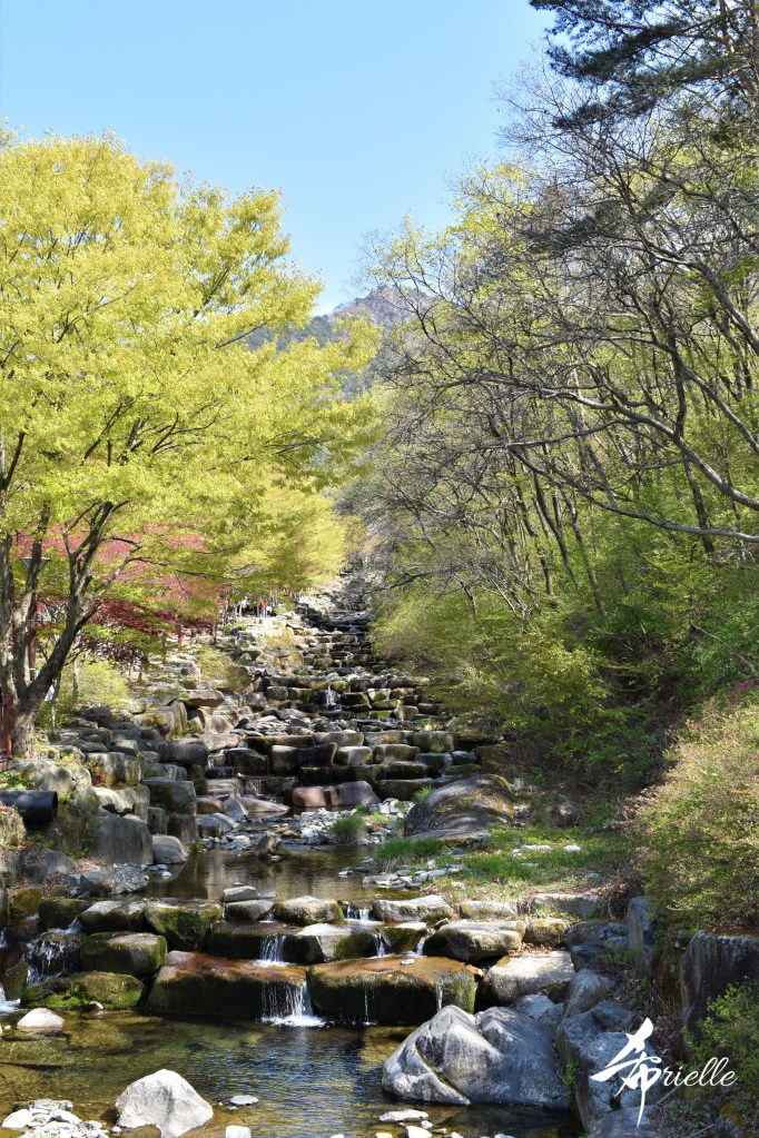 Etant donné que je passe la plupart de mon temps libre soit à la montagne, soit au bord de l’océan, on me demande souvent lequel des deux je préfère. Et bien, honnêtement c’est très difficile à dire mais je crois que là où je me sens le mieux, c’est au sommet d’une montagne offrant une vue sur l’océan. Que ce soit après une randonnée à pieds ou en vélo, il n’y a rien que j’aime plus que le fait de pouvoir finir la journée dans l’eau. Ainsi, l’une des villes où j’aime le plus marcher en Corée, est Tongyeong. Cette ville portuaire, montagneuse est constituée de plusieurs îles accessibles par bateau. Ces trois dernières années, j’ai eu l’occasion de faire le tour de la plupart de ces îles : Bijin, Saryang, Maemul, Seomaemul, Yokji, Suu … Les articles viendront si j’arrive à me tenir à la résolution de publier « plus souvent ». Oui, j’avoue ce n’est pas très précis ni très exigeant comme résolution ! Bref, cette année, j’avais donc envie de rejoindre le sommet de la montagne à Tongyeong qui n’est pas sur une île et ne nécessite donc pas de promenade en bateau. Ainsi, fin avril, j’ai pris le bus jusque là-bas puis un taxi pour rejoindre l’un des temples situés au pied du Mont Mireuk et d’où commence un sentier de randonnée. Encore une fois, il faisait tellement beau que la vue était superbe, en tons de bleu sur bleu. J’étais partie seule donc j’ai pris le temps de prendre toutes les photos que je voulais et profiter de la vue au sommet. Ce jour-là je n’ai pas croisé beaucoup d’autres marcheurs et je crois même que c’est le sentier le plus propre sur lequel j’ai jamais marché. Au sommet, comme le veut la tradition, le peu de personnes présentes, faisaient des photos avec la pierre indiquant le nom et l’altitude du pic. J’avais prévu mon trépied pour en prendre une aussi mais un promeneur venu avec un groupe, qui venait de faire plus d’une quinzaine de photos de ses amis, m’a dit qu’il était photographe et a insisté pour prendre la mienne. Je l’ai donc laissé faire et le résultat était plutôt convaincant. C’est agréable de discuter avec les gens en montagne parce qu’en général, ils sont souriants et sympathiques. Il faut dire qu’il est difficile de ne pas être de bonne humeur, face à la beauté des paysages ! Pour ceux qui le souhaitent, une ligne de cabines téléfériques fait aussi l’aller-retour du port au sommet. Pour ma part, j’ai particulièrement apprécié, une oeuvre d’art installée sur un belvédère offrant une vue vers l’est et sur l’île de Geoje. Il s’agissait d’une sculpture en métal du profil d’une femme regardant au loin. Ce n’est pas la première oeuvre de ce genre que je croise dans la région mais à et endroit, je ne m’y attendais vraiment pas et je l’ai trouvée absolument magnifique !