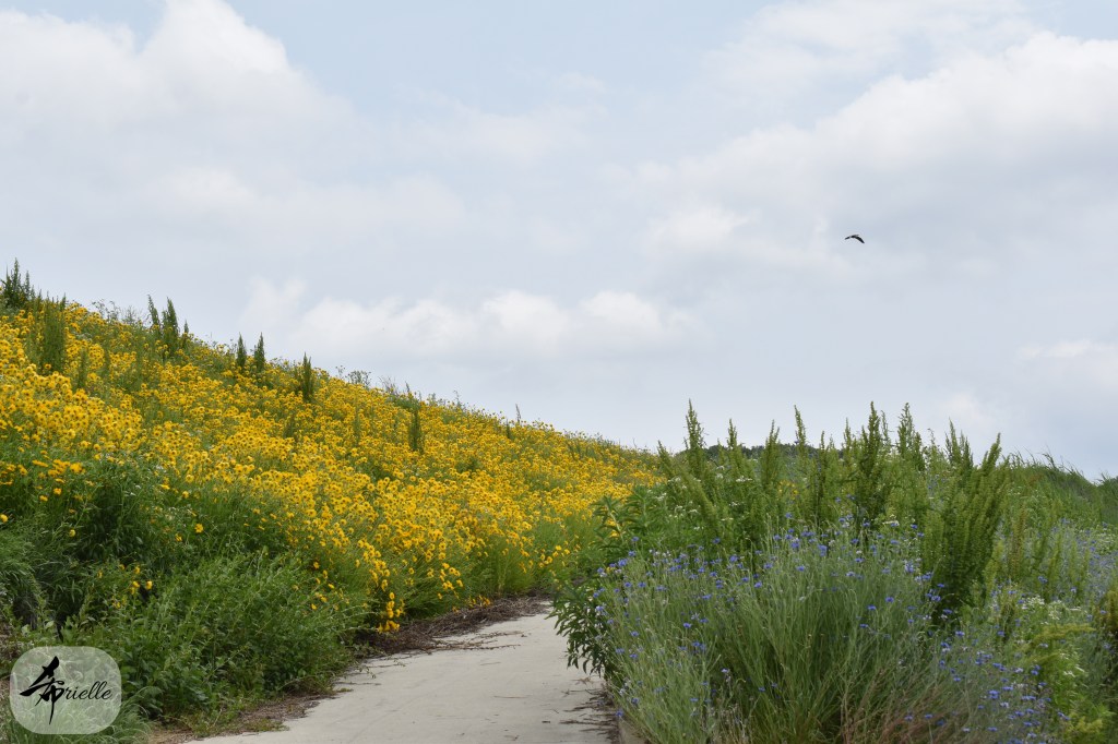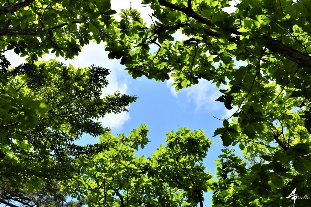 Enfin, en descendant du sommet, j’ai rejoint une autre plateforme plus au sud, servant d’ observatoire, offrant la plus belle vue de tout le parcours, côté sud. Là, je suis restée environ une heure à prendre des notes dans mon journal. Il ne faisait pas encore assez chaud pour partir profiter de la plage et d’une baignade en fin d’après-midi mais j’étais très satisfaite par cette journée. Ce n’est qu’en voulant regarder mes photos plus tard, que j’ai remarqué les zones sombres dessus, dues à de la poussière coincée à l’intérieur de mon appareil. Depuis, je l’ai fait nettoyer mais malheureusement les photos de quelques sorties récentes sont toutes parsemées de ces mêmes tâches.