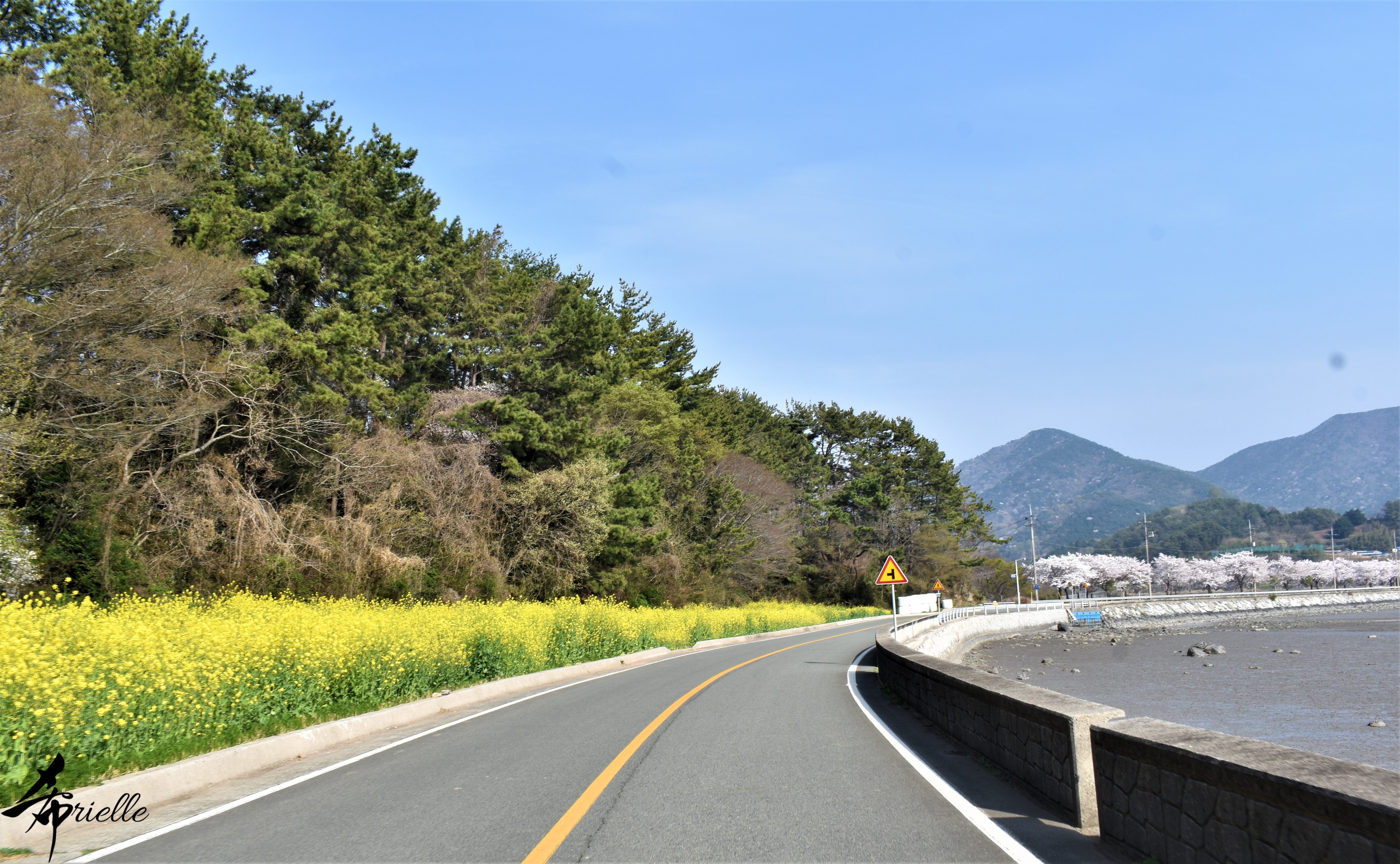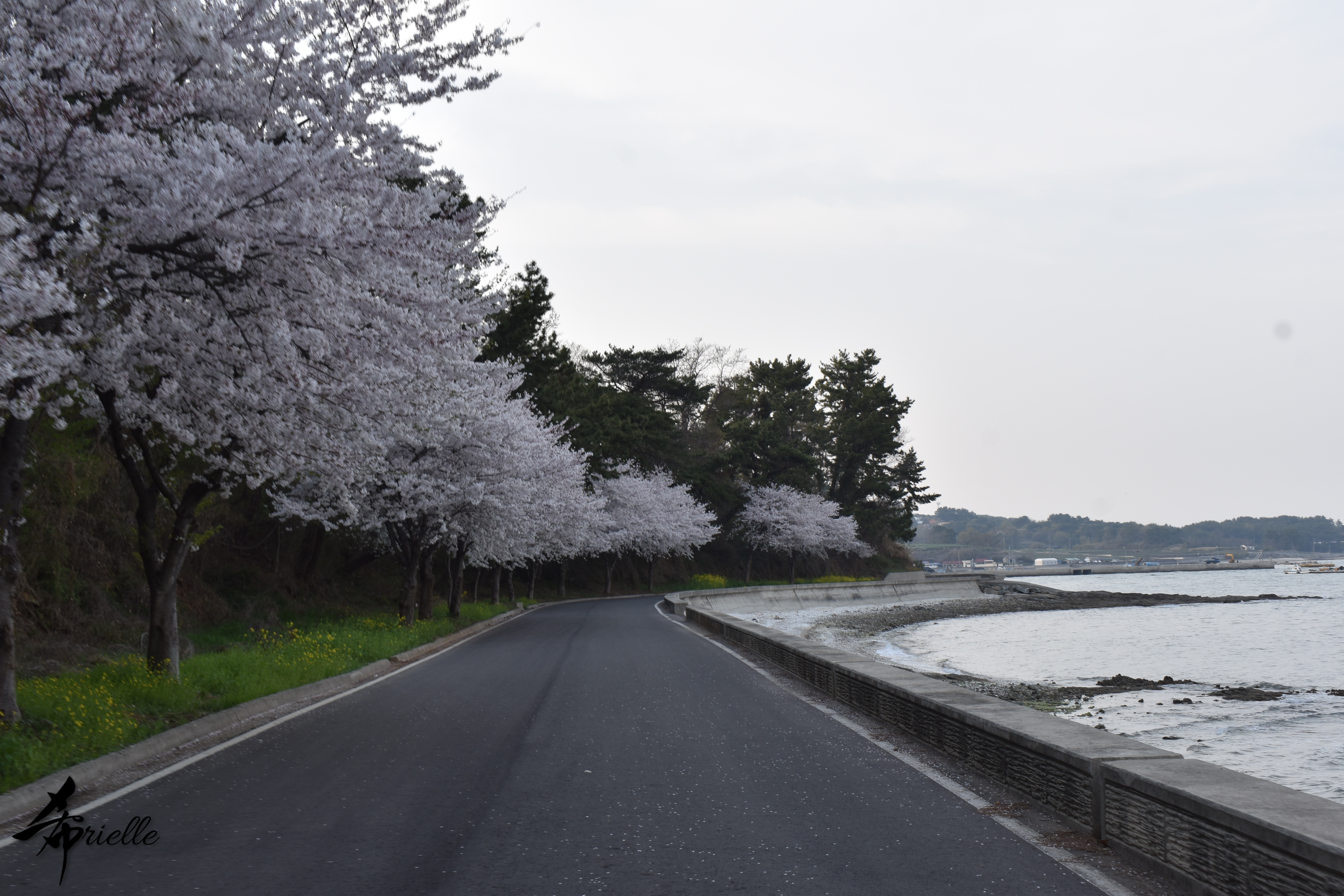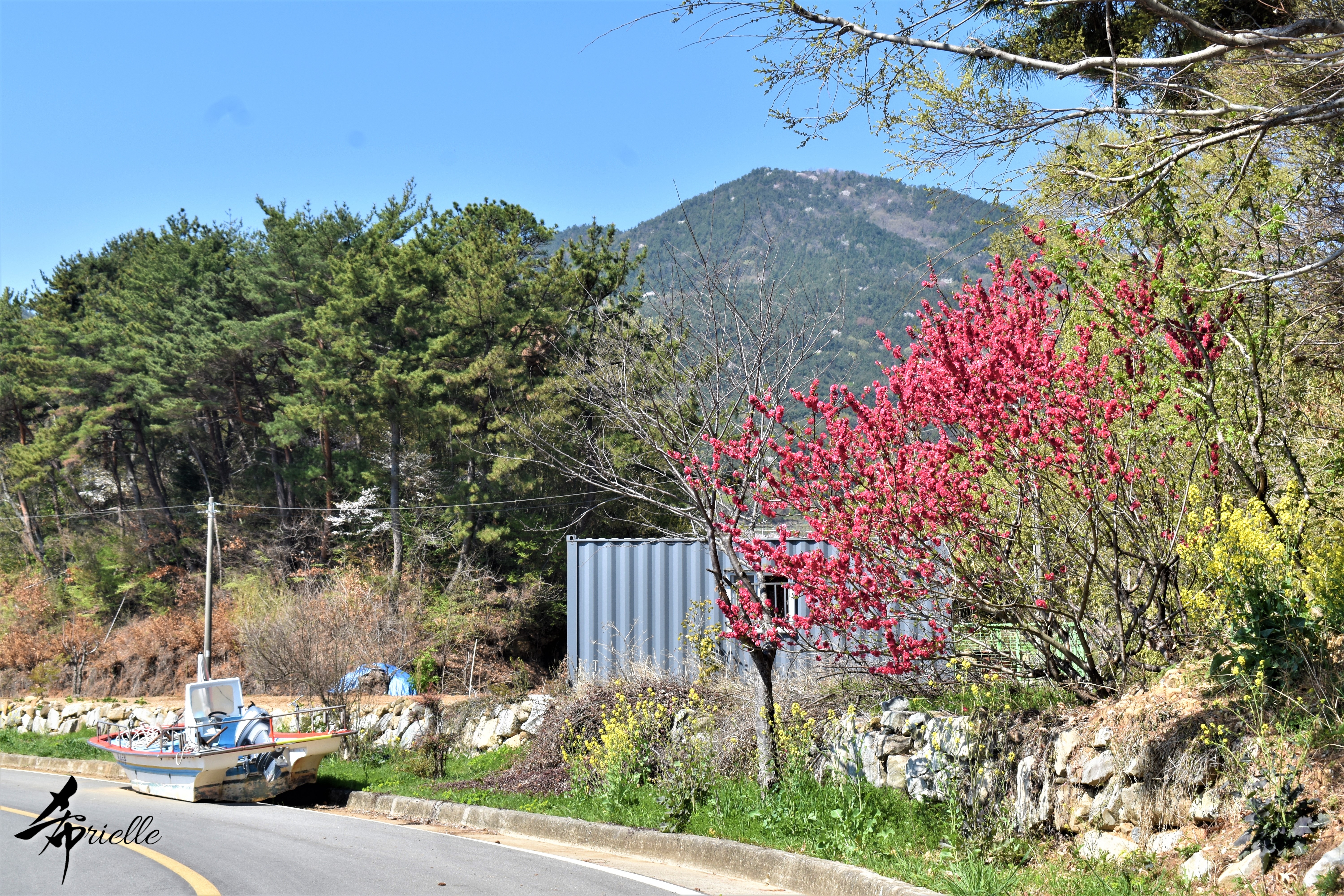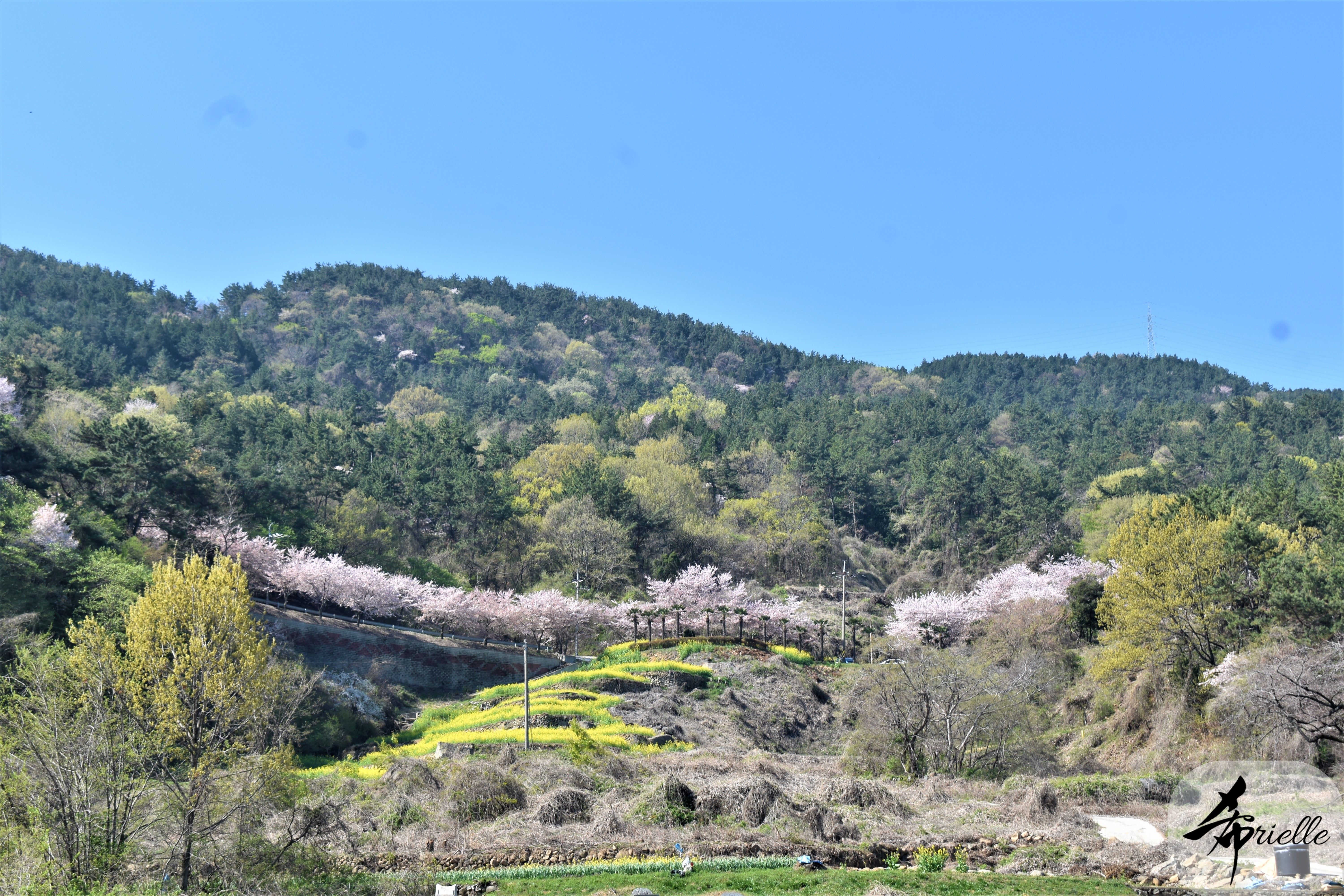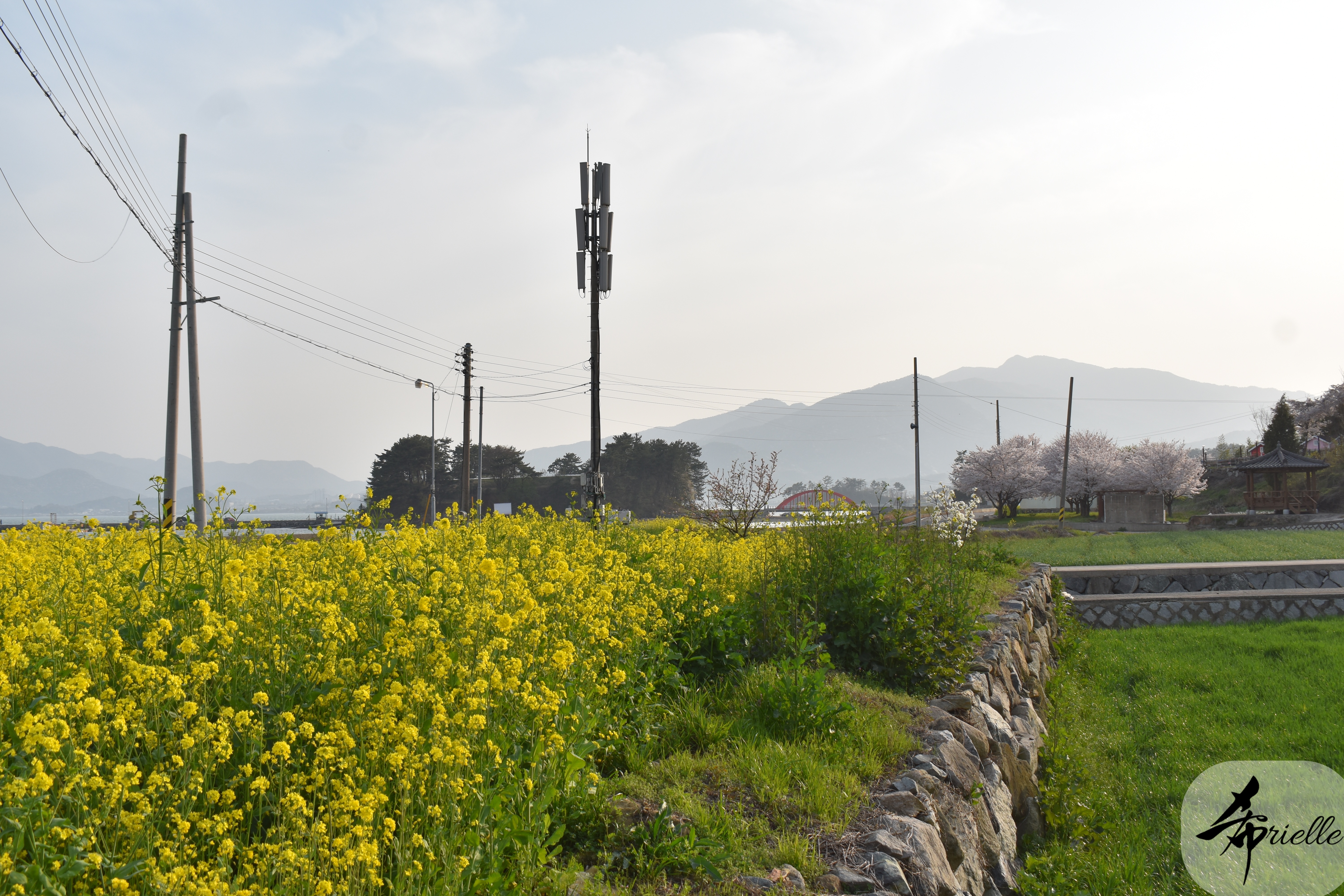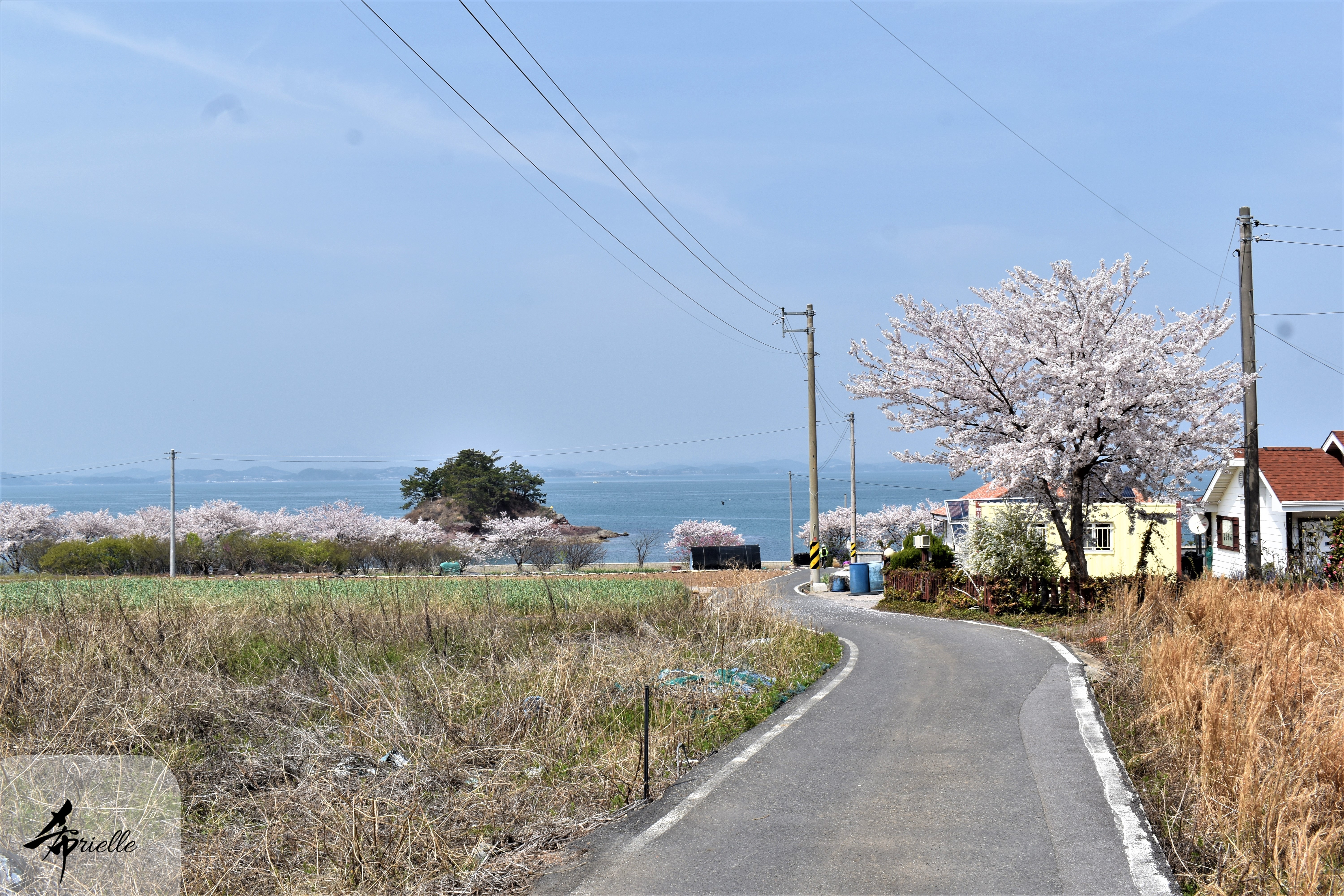 Etant donné que je passe la plupart de mon temps libre soit à la montagne, soit au bord de l’océan, on me demande souvent lequel des deux je préfère. Et bien, honnêtement c’est très difficile à dire mais je crois que là où je me sens le mieux, c’est au sommet d’une montagne offrant une vue sur l’océan. Que ce soit après une randonnée à pieds ou en vélo, il n’y a rien que j’aime plus que le fait de pouvoir finir la journée dans l’eau. Ainsi, l’une des villes où j’aime le plus marcher en Corée, est Tongyeong. Cette ville portuaire, montagneuse est constituée de plusieurs îles accessibles par bateau. Ces trois dernières années, j’ai eu l’occasion de faire le tour de la plupart de ces îles : Bijin, Saryang, Maemul, Seomaemul, Yokji, Suu … Les articles viendront si j’arrive à me tenir à la résolution de publier « plus souvent ». Oui, j’avoue ce n’est pas très précis ni très exigeant comme résolution ! Bref, cette année, j’avais donc envie de rejoindre le sommet de la montagne à Tongyeong qui n’est pas sur une île et ne nécessite donc pas de promenade en bateau. Ainsi, fin avril, j’ai pris le bus jusque là-bas puis un taxi pour rejoindre l’un des temples situés au pied du Mont Mireuk et d’où commence un sentier de randonnée. Encore une fois, il faisait tellement beau que la vue était superbe, en tons de bleu sur bleu. J’étais partie seule donc j’ai pris le temps de prendre toutes les photos que je voulais et profiter de la vue au sommet. Ce jour-là je n’ai pas croisé beaucoup d’autres marcheurs et je crois même que c’est le sentier le plus propre sur lequel j’ai jamais marché. Au sommet, comme le veut la tradition, le peu de personnes présentes, faisaient des photos avec la pierre indiquant le nom et l’altitude du pic. J’avais prévu mon trépied pour en prendre une aussi mais un promeneur venu avec un groupe, qui venait de faire plus d’une quinzaine de photos de ses amis, m’a dit qu’il était photographe et a insisté pour prendre la mienne. Je l’ai donc laissé faire et le résultat était plutôt convaincant. C’est agréable de discuter avec les gens en montagne parce qu’en général, ils sont souriants et sympathiques. Il faut dire qu’il est difficile de ne pas être de bonne humeur, face à la beauté des paysages ! Pour ceux qui le souhaitent, une ligne de cabines téléfériques fait aussi l’aller-retour du port au sommet. Pour ma part, j’ai particulièrement apprécié, une oeuvre d’art installée sur un belvédère offrant une vue vers l’est et sur l’île de Geoje. Il s’agissait d’une sculpture en métal du profil d’une femme regardant au loin. Ce n’est pas la première oeuvre de ce genre que je croise dans la région mais à et endroit, je ne m’y attendais vraiment pas et je l’ai trouvée absolument magnifique !