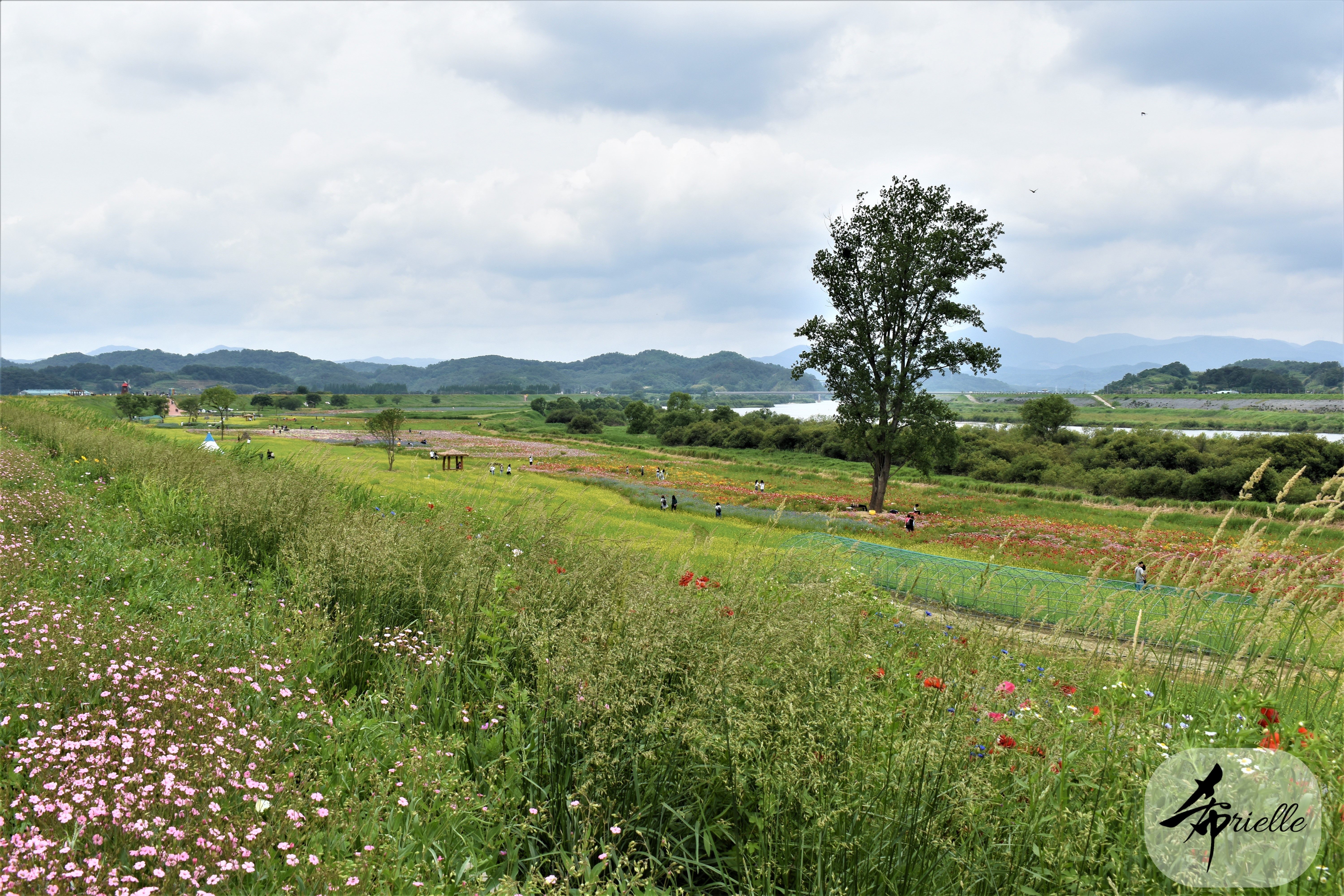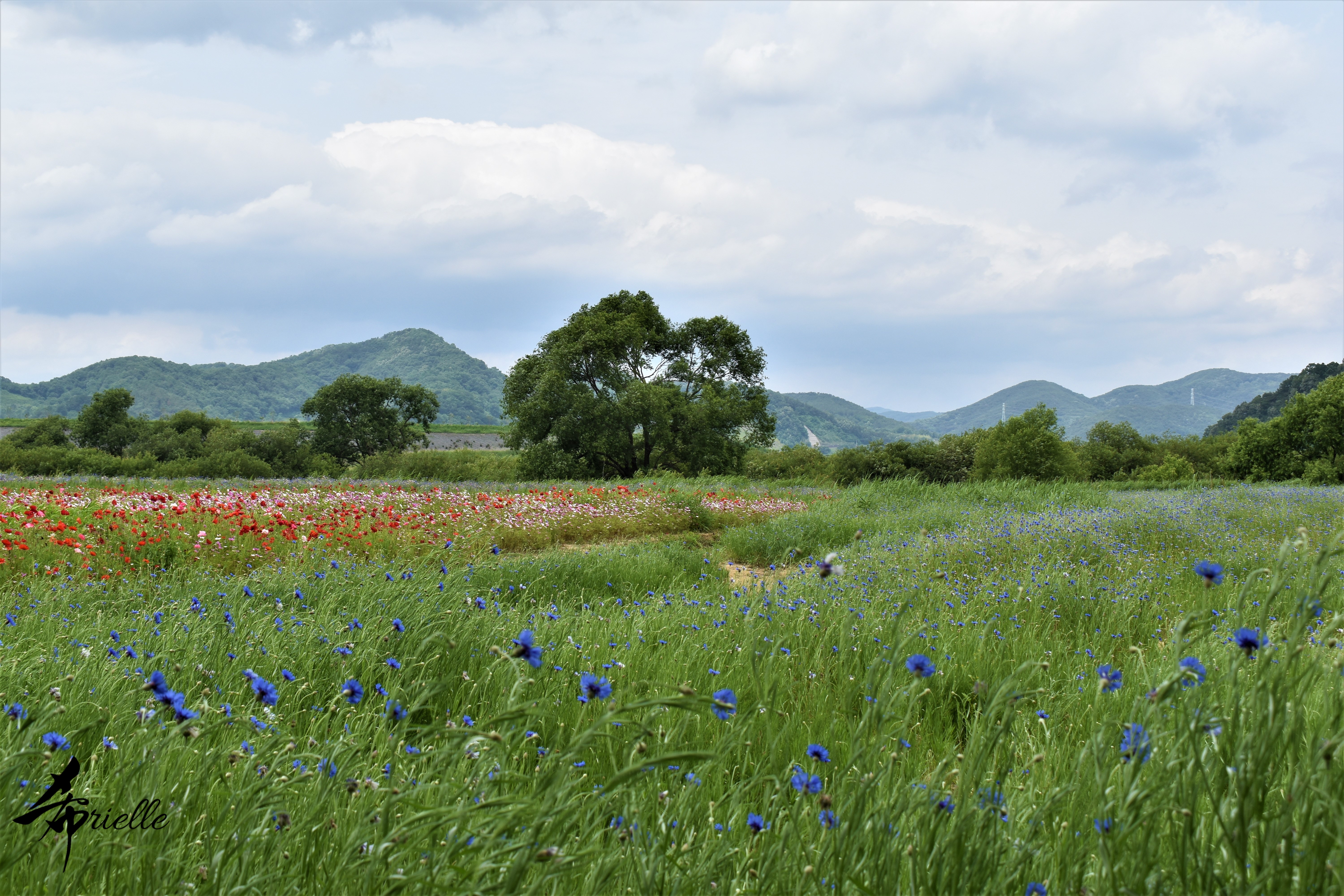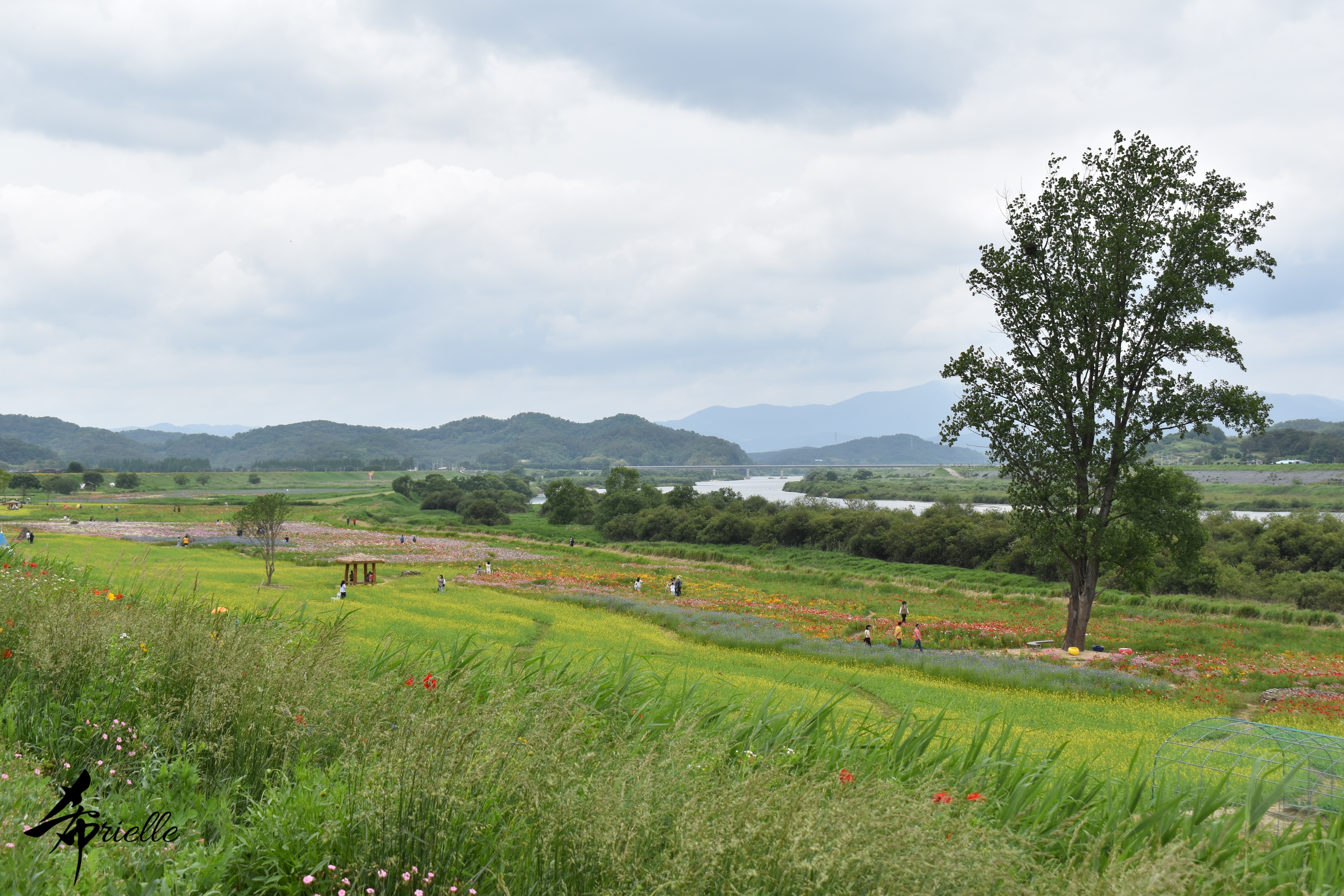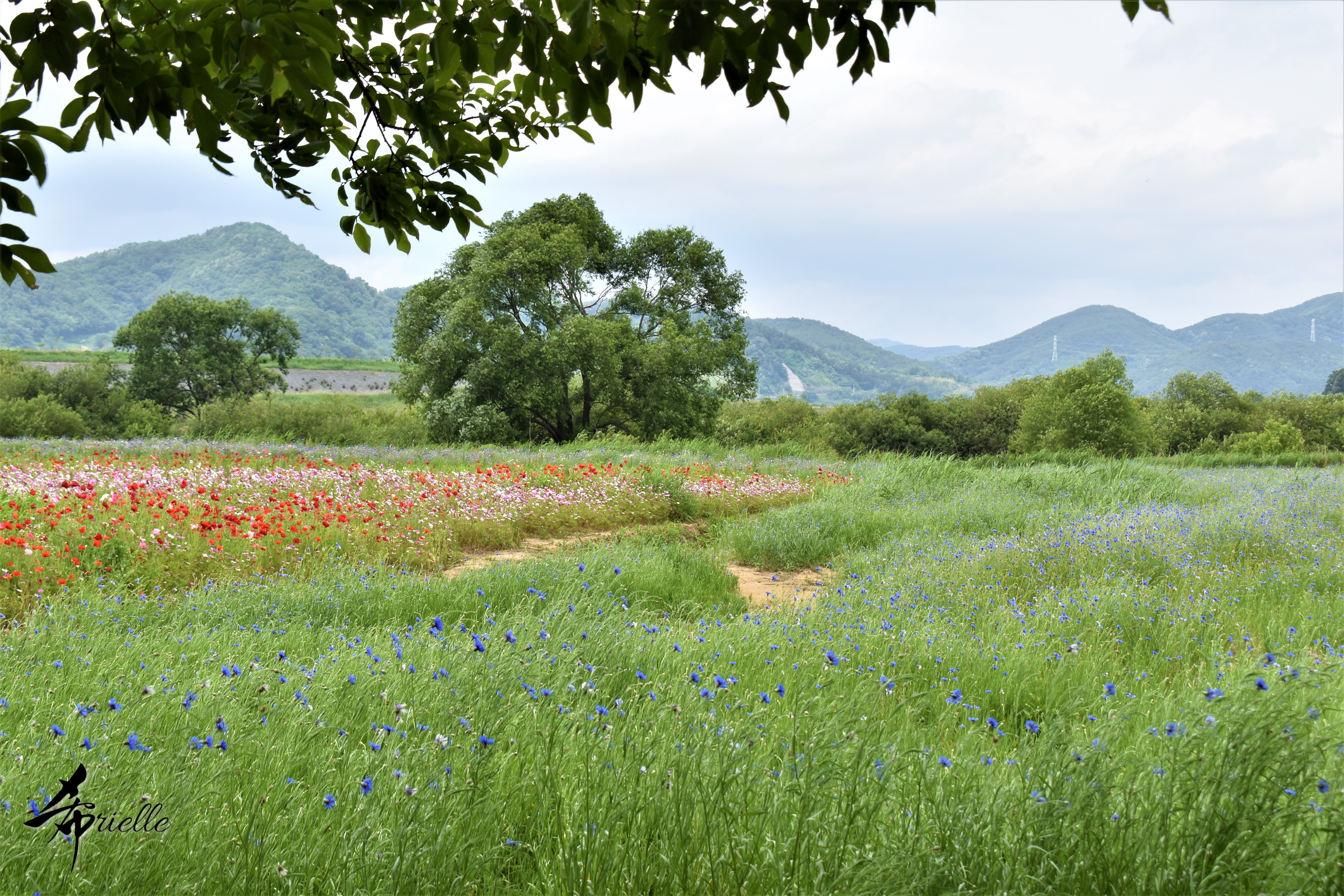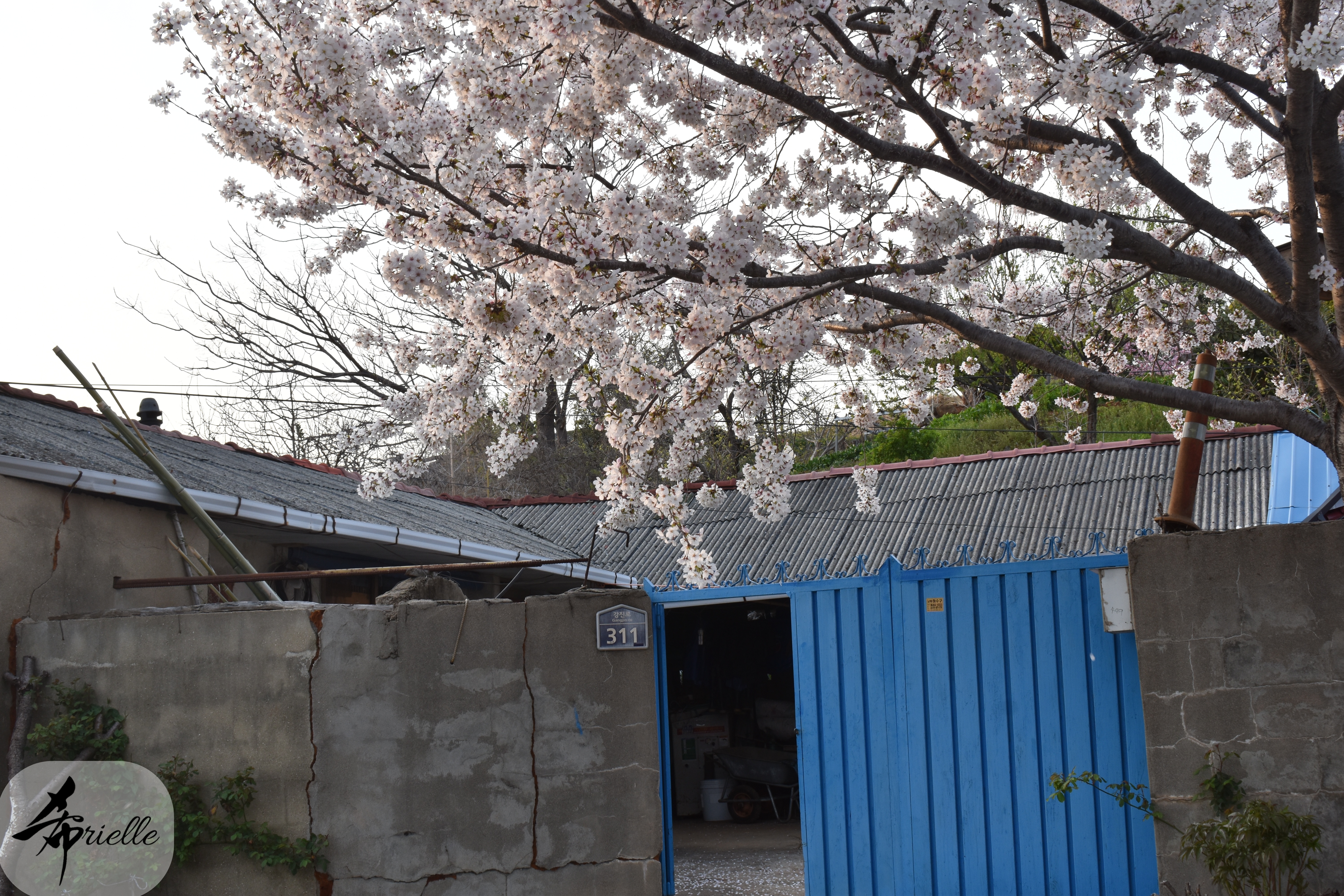 Etant donné que je passe la plupart de mon temps libre soit à la montagne, soit au bord de l’océan, on me demande souvent lequel des deux je préfère. Et bien, honnêtement c’est très difficile à dire mais je crois que là où je me sens le mieux, c’est au sommet d’une montagne offrant une vue sur l’océan. Que ce soit après une randonnée à pieds ou en vélo, il n’y a rien que j’aime plus que le fait de pouvoir finir la journée dans l’eau. Ainsi, l’une des villes où j’aime le plus marcher en Corée, est Tongyeong. Cette ville portuaire, montagneuse est constituée de plusieurs îles accessibles par bateau. Ces trois dernières années, j’ai eu l’occasion de faire le tour de la plupart de ces îles : Bijin, Saryang, Maemul, Seomaemul, Yokji, Suu … Les articles viendront si j’arrive à me tenir à la résolution de publier « plus souvent ». Oui, j’avoue ce n’est pas très précis ni très exigeant comme résolution ! Bref, cette année, j’avais donc envie de rejoindre le sommet de la montagne à Tongyeong qui n’est pas sur une île et ne nécessite donc pas de promenade en bateau. Ainsi, fin avril, j’ai pris le bus jusque là-bas puis un taxi pour rejoindre l’un des temples situés au pied du Mont Mireuk et d’où commence un sentier de randonnée. Encore une fois, il faisait tellement beau que la vue était superbe, en tons de bleu sur bleu. J’étais partie seule donc j’ai pris le temps de prendre toutes les photos que je voulais et profiter de la vue au sommet. Ce jour-là je n’ai pas croisé beaucoup d’autres marcheurs et je crois même que c’est le sentier le plus propre sur lequel j’ai jamais marché. Au sommet, comme le veut la tradition, le peu de personnes présentes, faisaient des photos avec la pierre indiquant le nom et l’altitude du pic. J’avais prévu mon trépied pour en prendre une aussi mais un promeneur venu avec un groupe, qui venait de faire plus d’une quinzaine de photos de ses amis, m’a dit qu’il était photographe et a insisté pour prendre la mienne. Je l’ai donc laissé faire et le résultat était plutôt convaincant. C’est agréable de discuter avec les gens en montagne parce qu’en général, ils sont souriants et sympathiques. Il faut dire qu’il est difficile de ne pas être de bonne humeur, face à la beauté des paysages ! Pour ceux qui le souhaitent, une ligne de cabines téléfériques fait aussi l’aller-retour du port au sommet. Pour ma part, j’ai particulièrement apprécié, une oeuvre d’art installée sur un belvédère offrant une vue vers l’est et sur l’île de Geoje. Il s’agissait d’une sculpture en métal du profil d’une femme regardant au loin. Ce n’est pas la première oeuvre de ce genre que je croise dans la région mais à et endroit, je ne m’y attendais vraiment pas et je l’ai trouvée absolument magnifique !