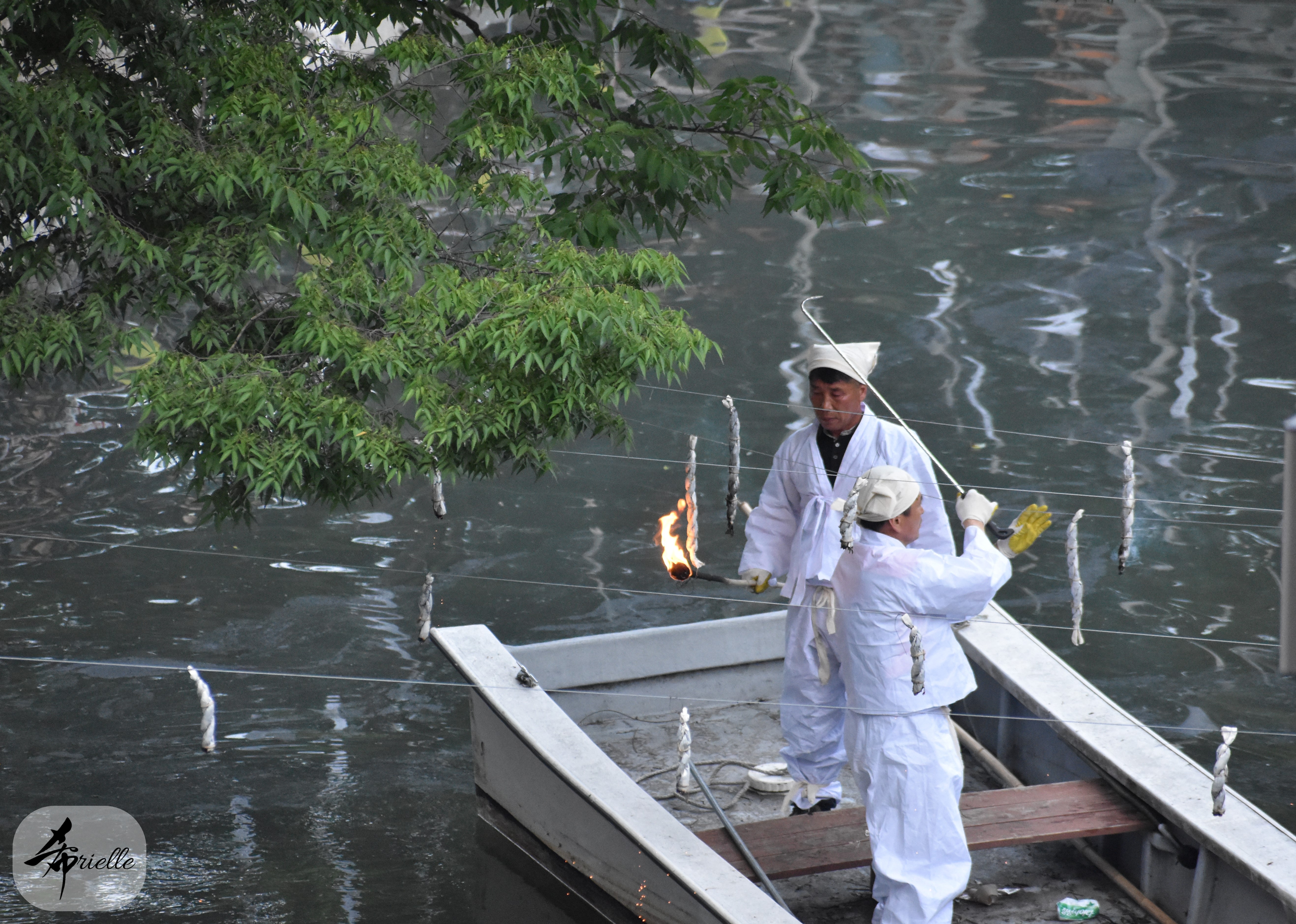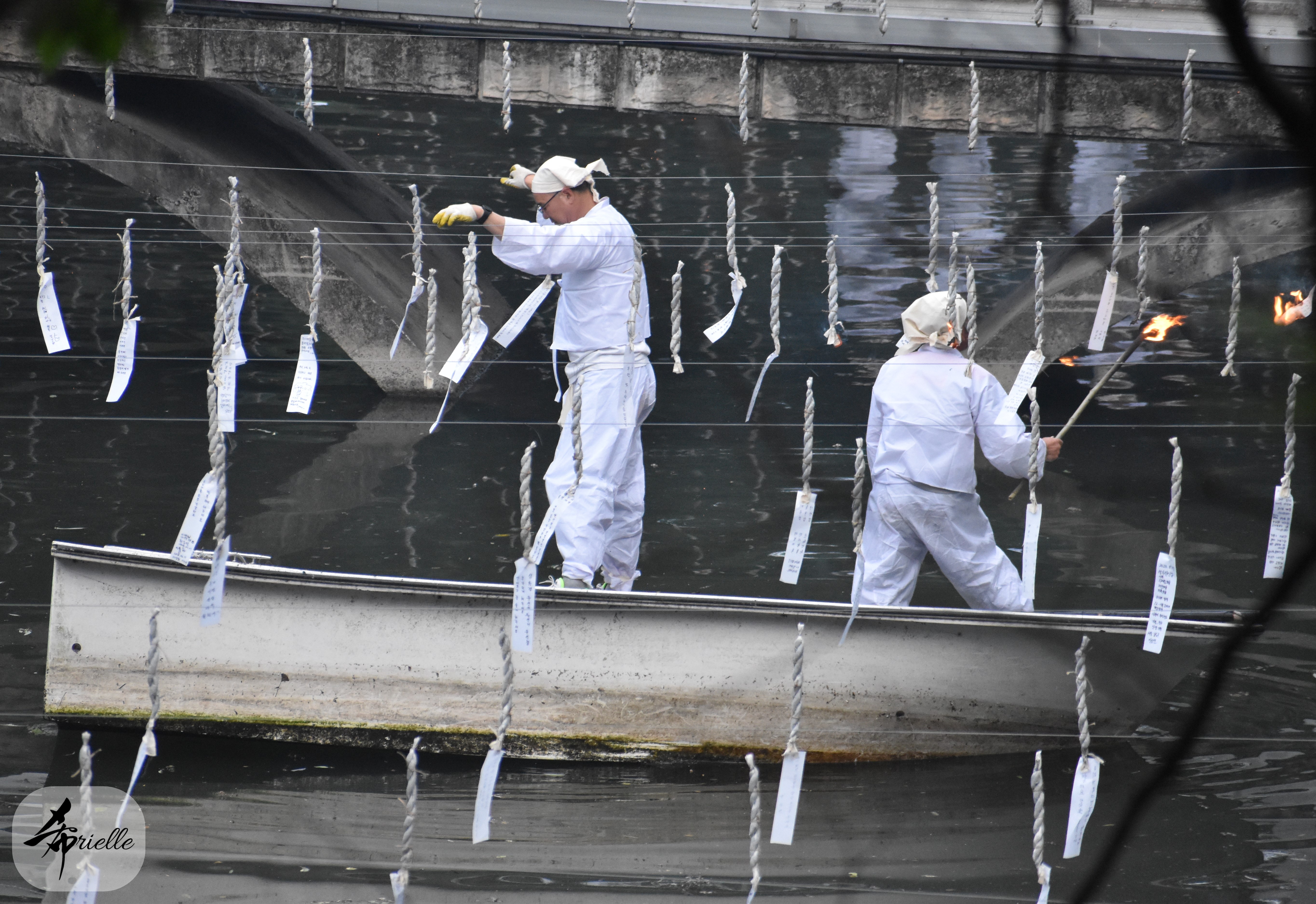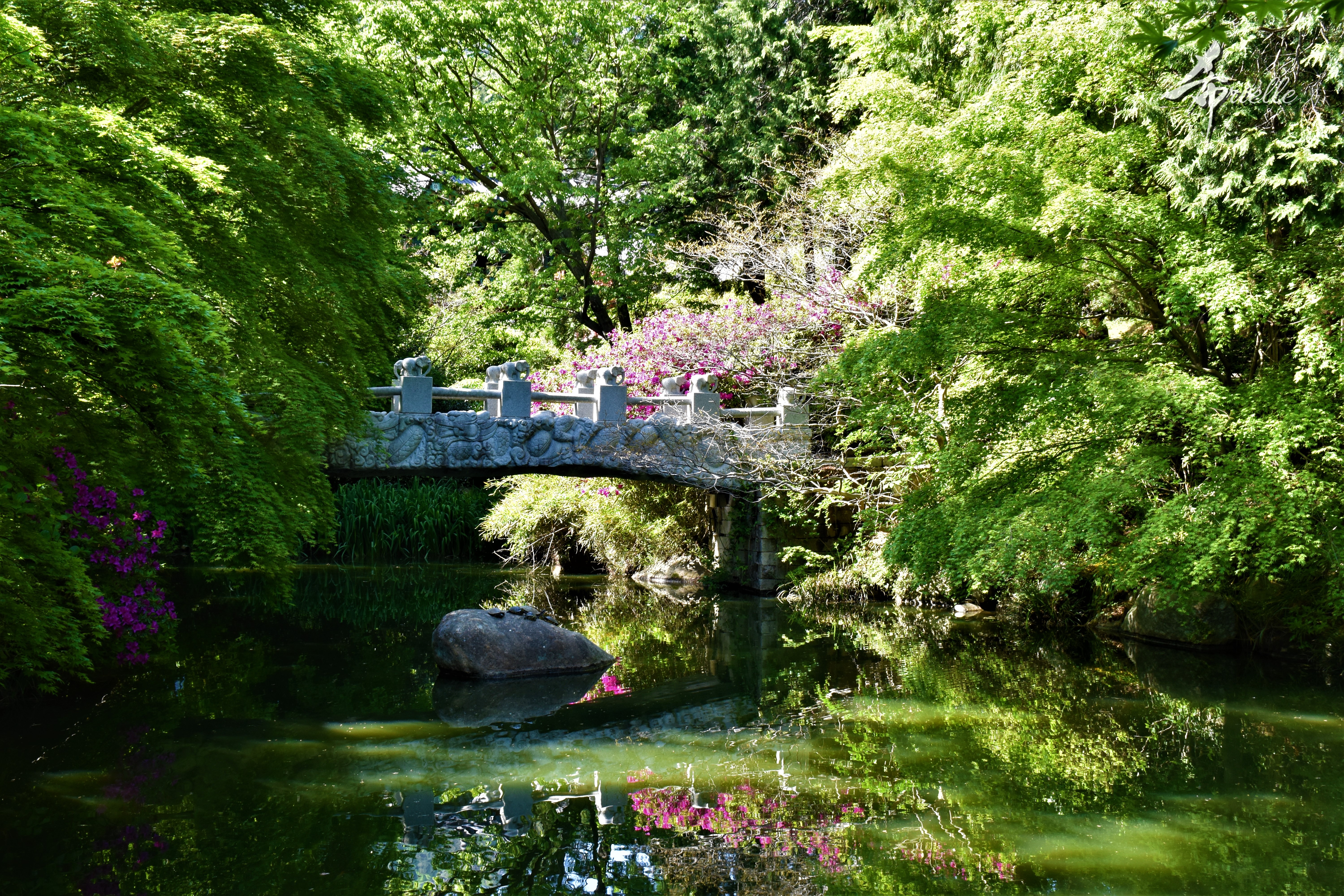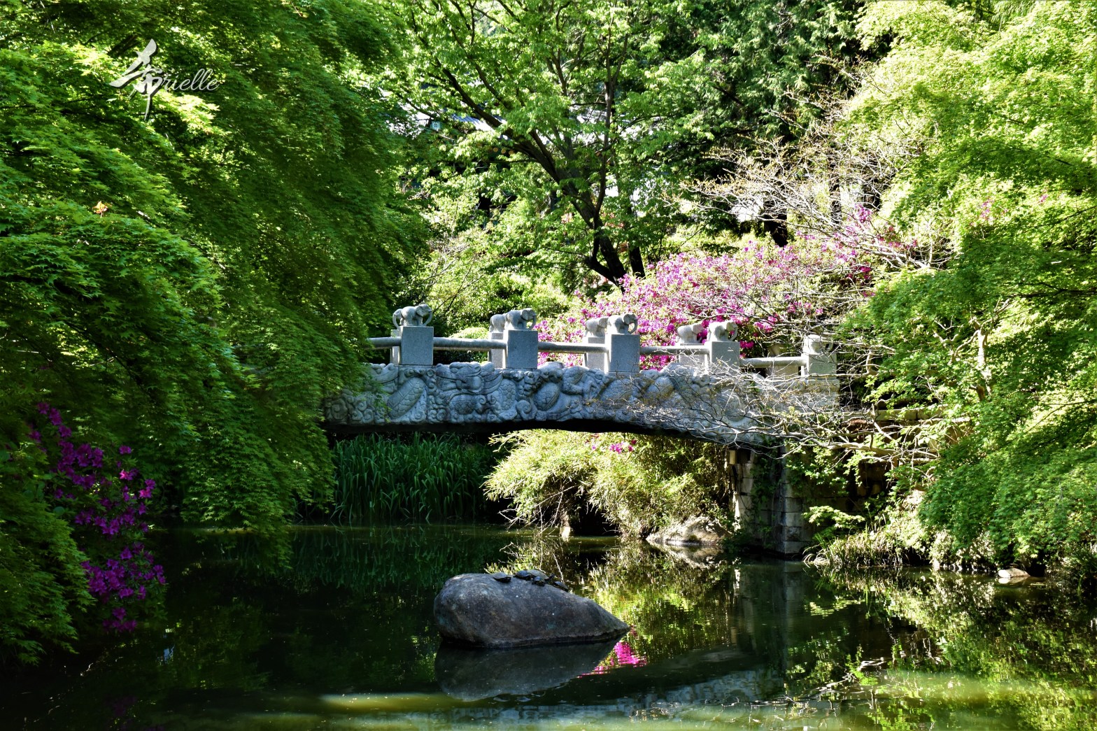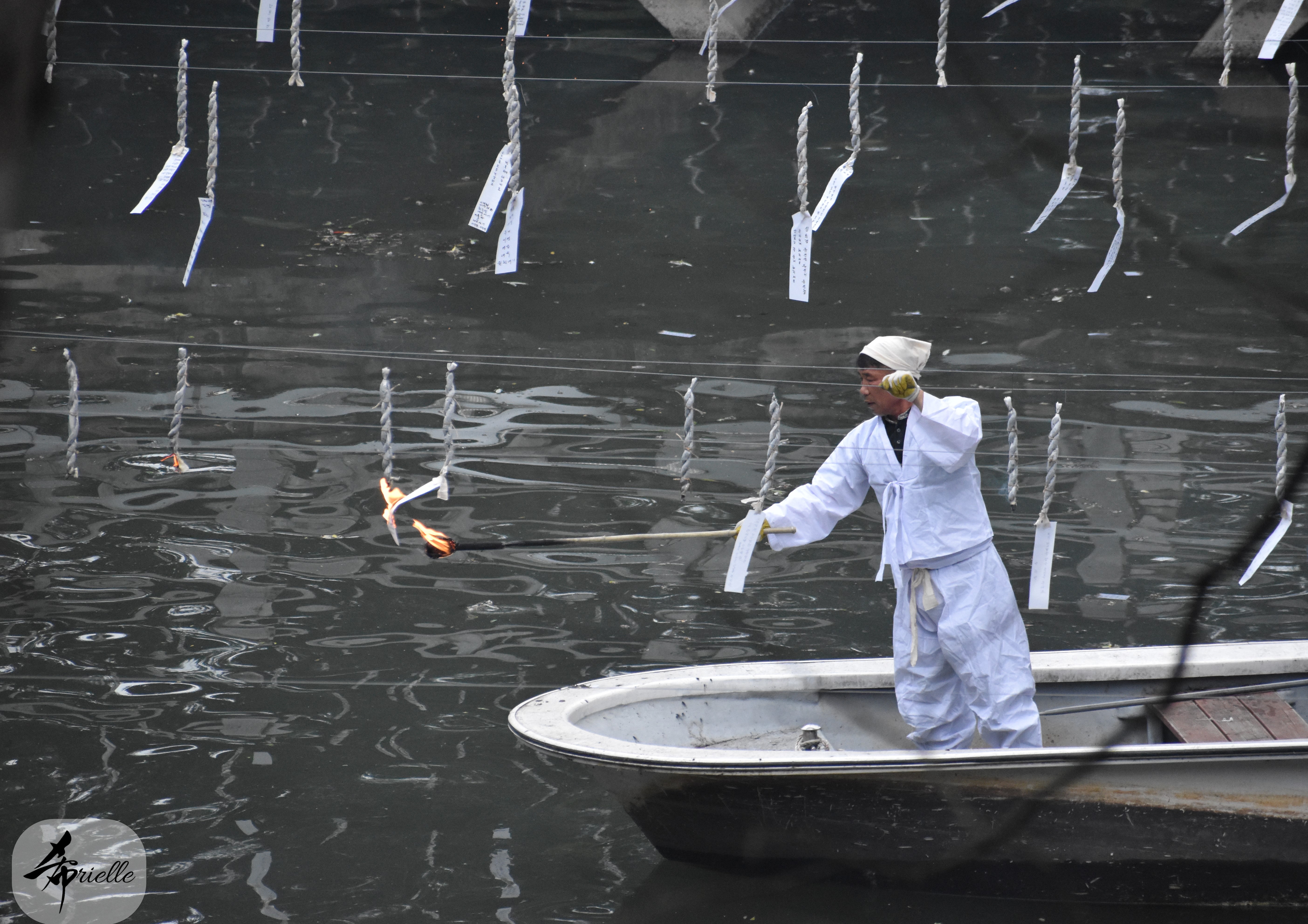 Etant donné que je passe la plupart de mon temps libre soit à la montagne, soit au bord de l’océan, on me demande souvent lequel des deux je préfère. Et bien, honnêtement c’est très difficile à dire mais je crois que là où je me sens le mieux, c’est au sommet d’une montagne offrant une vue sur l’océan. Que ce soit après une randonnée à pieds ou en vélo, il n’y a rien que j’aime plus que le fait de pouvoir finir la journée dans l’eau. Ainsi, l’une des villes où j’aime le plus marcher en Corée, est Tongyeong. Cette ville portuaire, montagneuse est constituée de plusieurs îles accessibles par bateau. Ces trois dernières années, j’ai eu l’occasion de faire le tour de la plupart de ces îles : Bijin, Saryang, Maemul, Seomaemul, Yokji, Suu … Les articles viendront si j’arrive à me tenir à la résolution de publier « plus souvent ». Oui, j’avoue ce n’est pas très précis ni très exigeant comme résolution ! Bref, cette année, j’avais donc envie de rejoindre le sommet de la montagne à Tongyeong qui n’est pas sur une île et ne nécessite donc pas de promenade en bateau. Ainsi, fin avril, j’ai pris le bus jusque là-bas puis un taxi pour rejoindre l’un des temples situés au pied du Mont Mireuk et d’où commence un sentier de randonnée. Encore une fois, il faisait tellement beau que la vue était superbe, en tons de bleu sur bleu. J’étais partie seule donc j’ai pris le temps de prendre toutes les photos que je voulais et profiter de la vue au sommet. Ce jour-là je n’ai pas croisé beaucoup d’autres marcheurs et je crois même que c’est le sentier le plus propre sur lequel j’ai jamais marché. Au sommet, comme le veut la tradition, le peu de personnes présentes, faisaient des photos avec la pierre indiquant le nom et l’altitude du pic. J’avais prévu mon trépied pour en prendre une aussi mais un promeneur venu avec un groupe, qui venait de faire plus d’une quinzaine de photos de ses amis, m’a dit qu’il était photographe et a insisté pour prendre la mienne. Je l’ai donc laissé faire et le résultat était plutôt convaincant. C’est agréable de discuter avec les gens en montagne parce qu’en général, ils sont souriants et sympathiques. Il faut dire qu’il est difficile de ne pas être de bonne humeur, face à la beauté des paysages ! Pour ceux qui le souhaitent, une ligne de cabines téléfériques fait aussi l’aller-retour du port au sommet. Pour ma part, j’ai particulièrement apprécié, une oeuvre d’art installée sur un belvédère offrant une vue vers l’est et sur l’île de Geoje. Il s’agissait d’une sculpture en métal du profil d’une femme regardant au loin. Ce n’est pas la première oeuvre de ce genre que je croise dans la région mais à et endroit, je ne m’y attendais vraiment pas et je l’ai trouvée absolument magnifique !