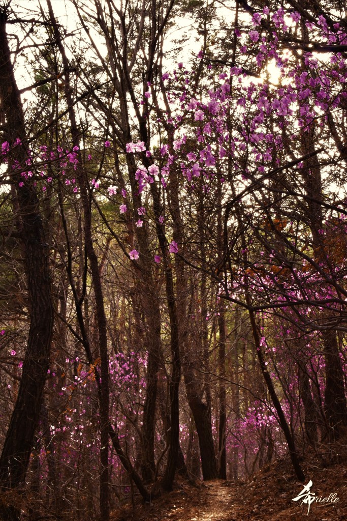 On n’était pas vraiment en tenues de randonnée mais l’idée d’avoir une vue d’ensemble sur le village avec un peu du fleuve qui traverse la région nous a paru tellement tentante qu’on n’a pas vraiment hésité et sommes parties dans la forêt pour rejoindre l’observatoire du sommet, situé à 537 mètres d’altitude. Non seulement, la vue d’en haut était superbe mais le sentier de marche était couvert d’azalées, c’était magnifique. Alors peut-être que c’est parce que ce sentier semblait beaucoup moins manufacturé ou parce qu’on ne s’y attendait pas du tout mais la promenade parmi les azalées m’a encore plus plu que celle sous les cerisiers. Les photos ne sont pas nombreuses mais j’espère que vous les apprécierez et qu’elle vous donnerons envie d’aller vous promener à Maehwa, Gwangyang. (Ok, il y en a quand même une vingtaine !)
