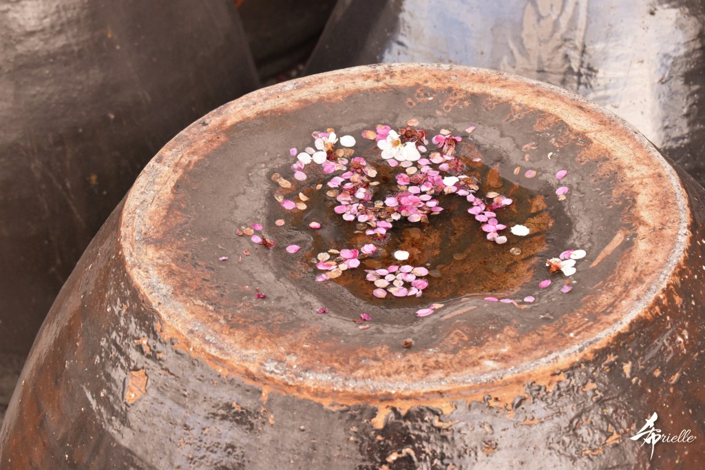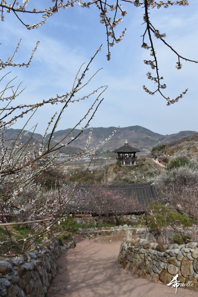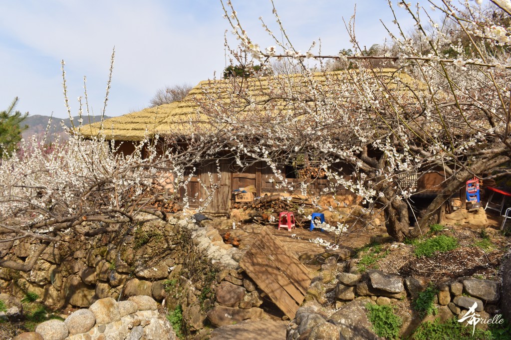 Tout d’abord, le village de Maehwa à Gwangyang donne l’impression de plonger dans un film historique de Corée du Sud. On y voit plusieurs Hanok (maisons traditionnelles) des poteries empilées ici et là puisque l’un des fabricants les plus importants en la matière, a son entreprise au cœur du village. Comme il faisait beau mais que c’était le milieu de l’après-midi, un jour de semaine, il n’y avait pas trop de monde, c’était donc idéal pour faire des photos. A l’entrée du village, il y avait bien sûr des artisans locaux qui vendaient leurs produits et parmi ceux-ci on a trouvé de délicieuses prunes séchées, du makeoli à la prune, pris à emporter pour plus tard et des cônes de glace à l’alcool de prune, consommés sur place !