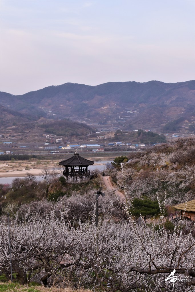 En début d’après-midi, une amie dont le rendez-vous venait d’être annulé, m’appelle pour me demander si je serai disponible dans la journée pour un café en terrasse. Je lui dis que je ne peux pas car j’ai cours jusqu’à 18h et alors qu’on était au téléphone, je reçois un message me disant que tous les cours sont annulés pour le reste de la journée. Je le vois dès que je raccroche et la rappelle : Ça te dirait pas plutôt d’aller te promener du côté de Gwangyang pour profiter des cerisiers en fleurs ? Je n’y étais encore jamais allée mais en avais entendu beaucoup de bien. Et nous voilà parties en voiture, 30 minutes plus tard.