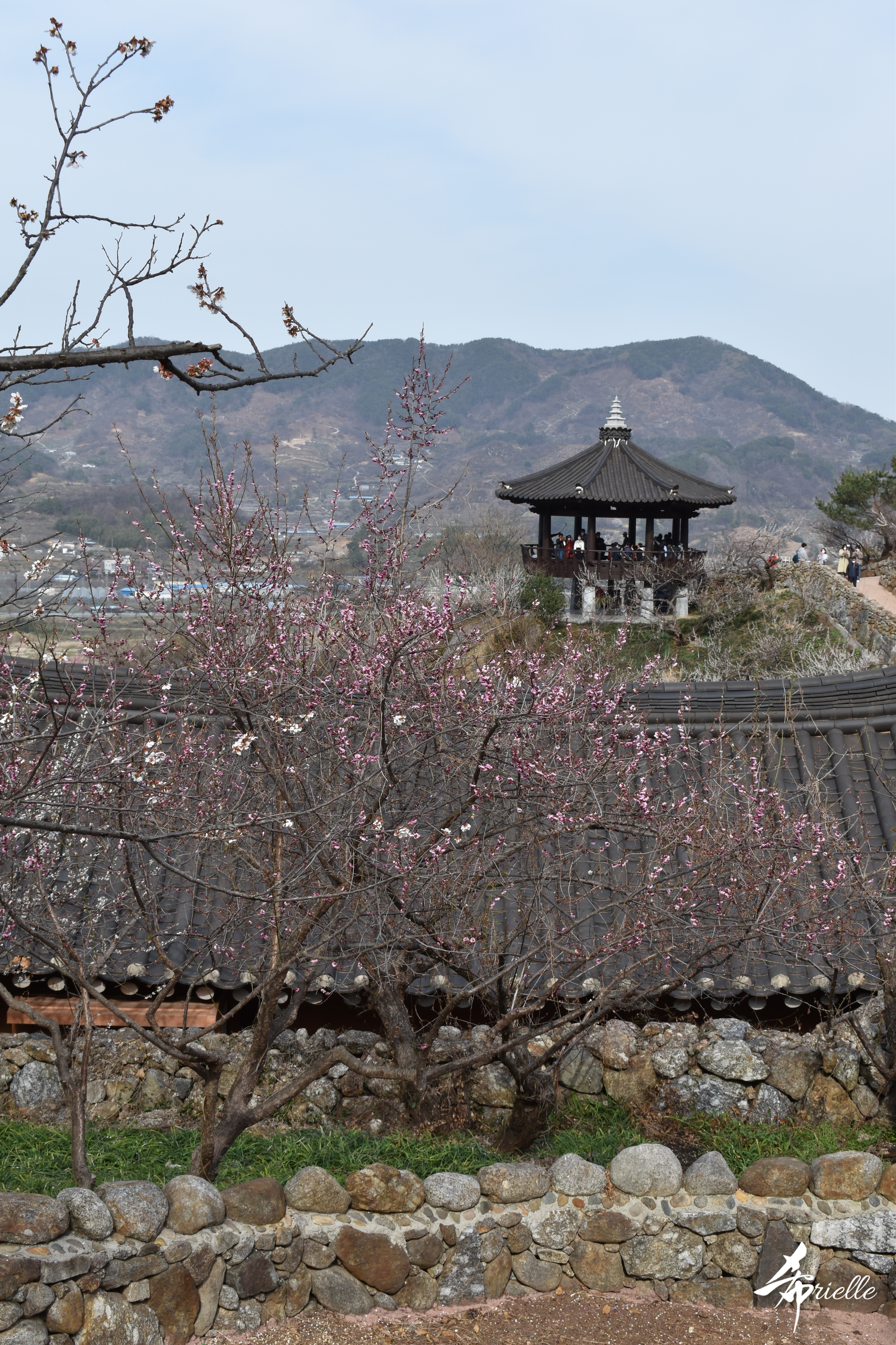 Tout d’abord, le village de Maehwa à Gwangyang donne l’impression de plonger dans un film historique de Corée du Sud. On y voit plusieurs Hanok (maisons traditionnelles) des poteries empilées ici et là puisque l’un des fabricants les plus importants en la matière, a son entreprise au cœur du village. Comme il faisait beau mais que c’était le milieu de l’après-midi, un jour de semaine, il n’y avait pas trop de monde, c’était donc idéal pour faire des photos. A l’entrée du village, il y avait bien sûr des artisans locaux qui vendaient leurs produits et parmi ceux-ci on a trouvé de délicieuses prunes séchées, du makeoli à la prune, pris à emporter pour plus tard et des cônes de glace à l’alcool de prune, consommés sur place !